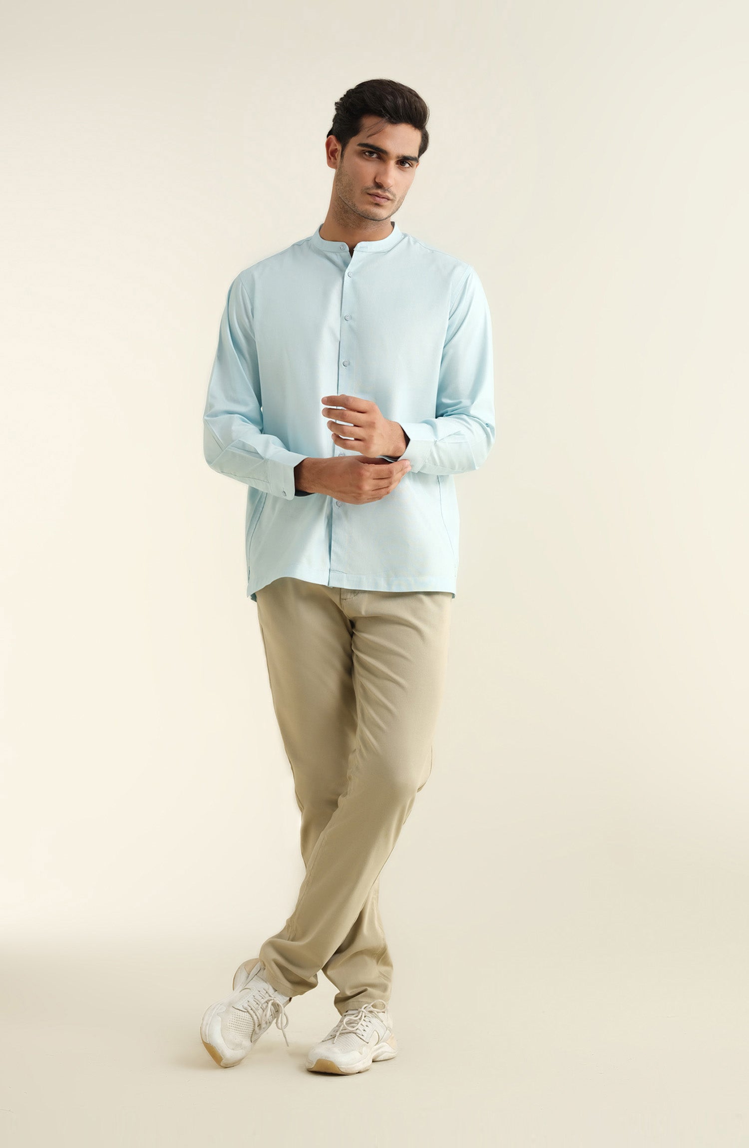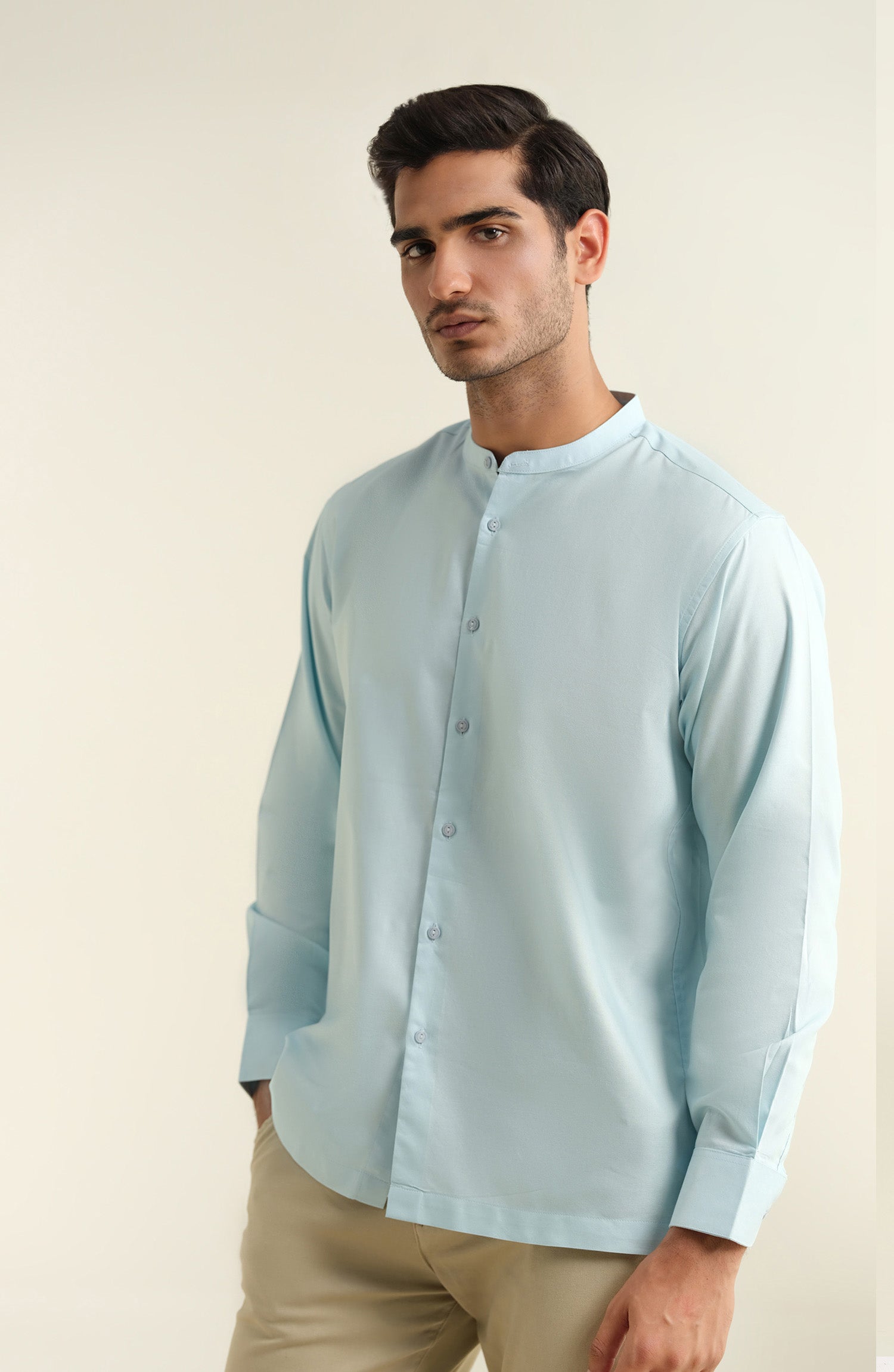 Band Collar Shirt – Sky Blue