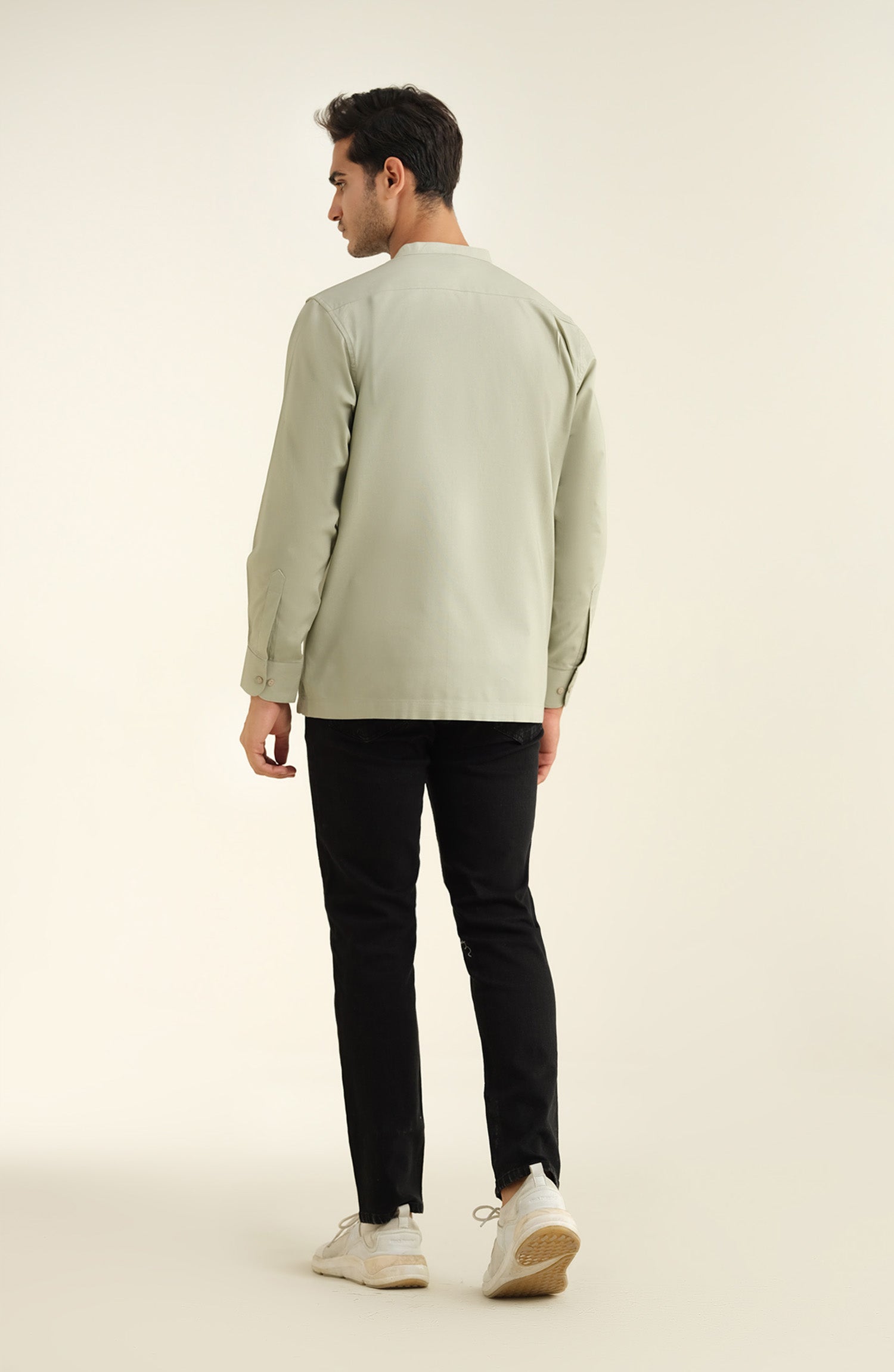 Band Collar Shirt – Light Green