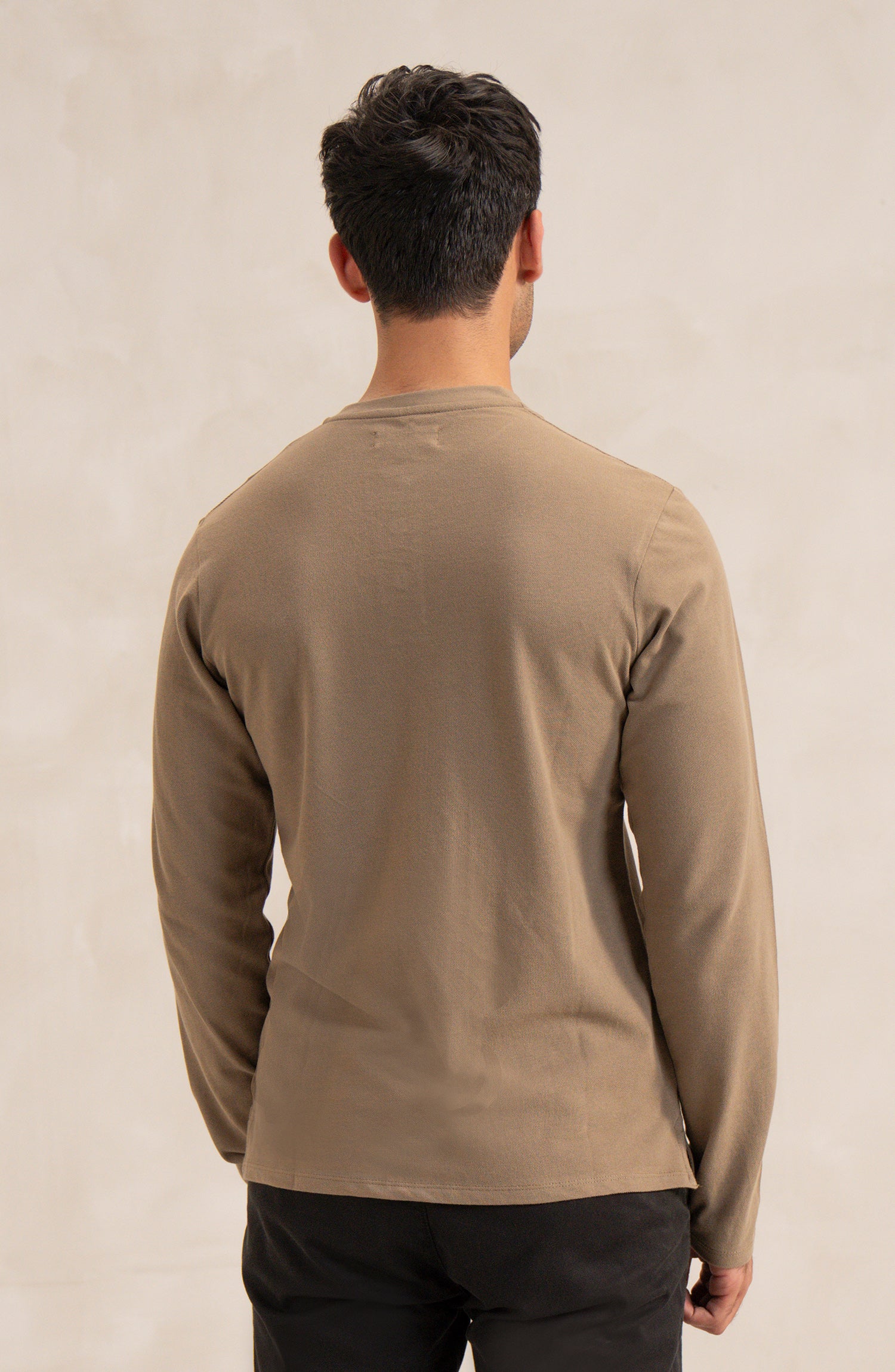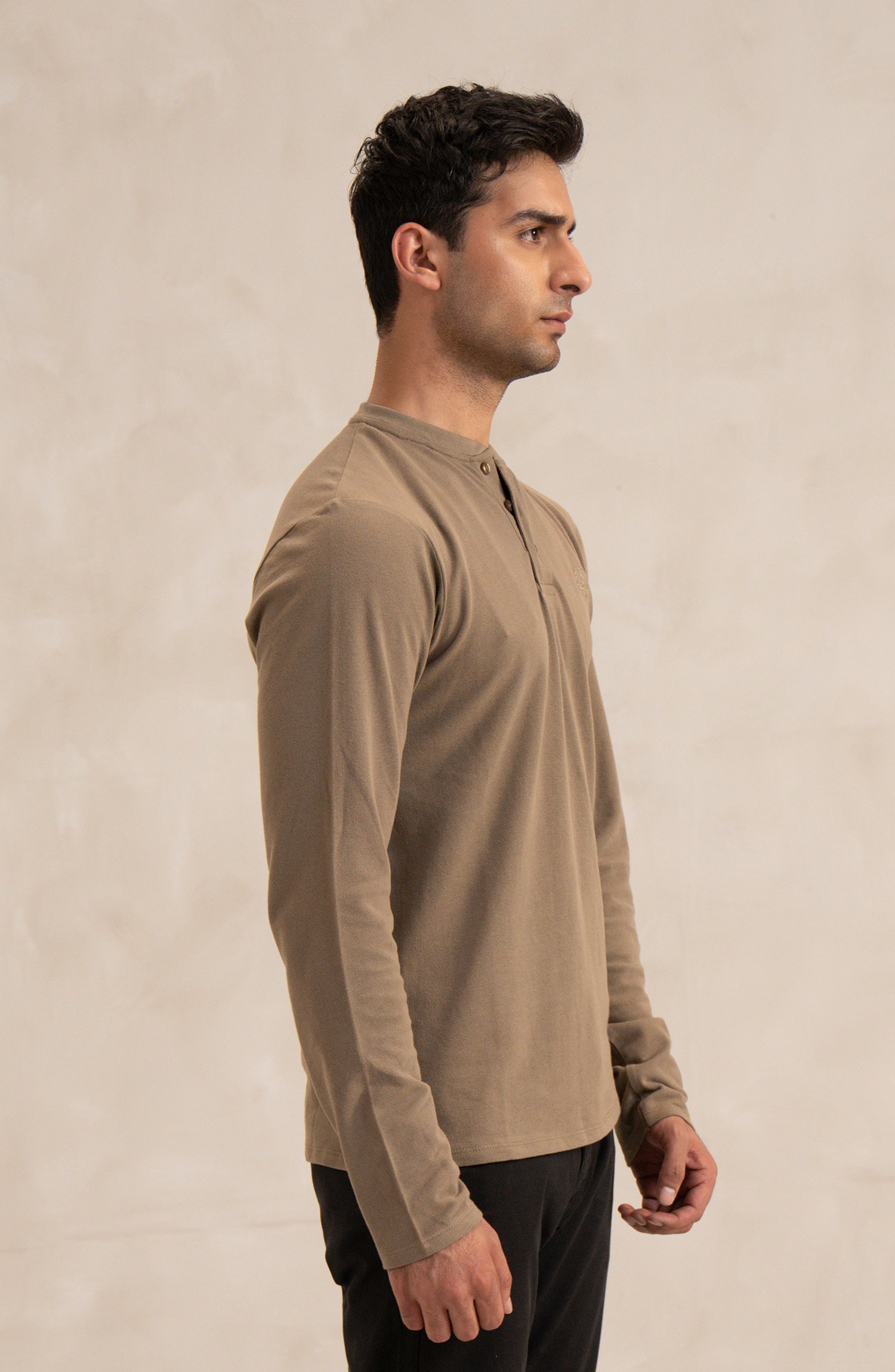 A vibrant medium green Henley made from breathable pique knit for all-day comfort.