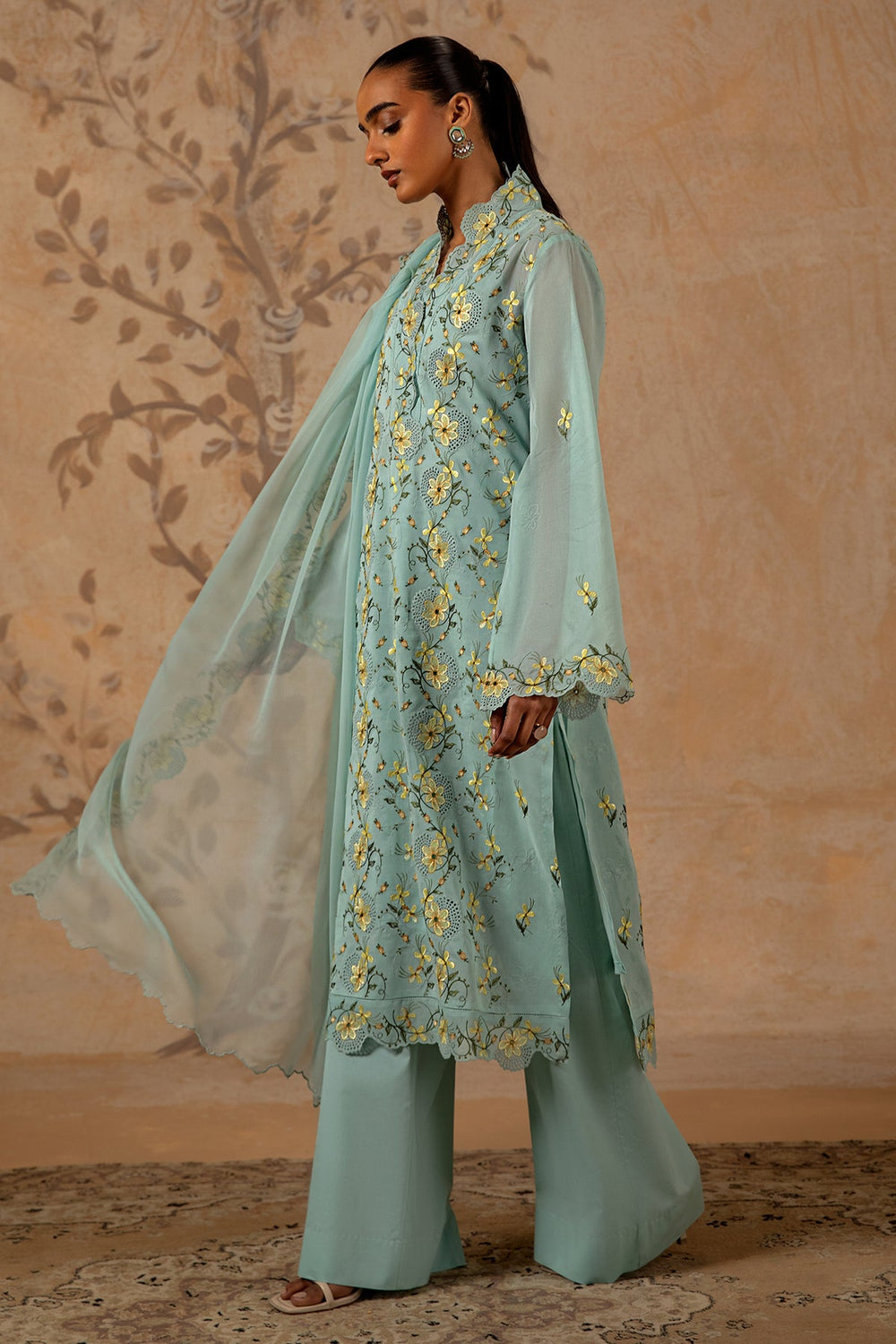 4 Piece - Embroidered Pure Voile Suit - MC1611