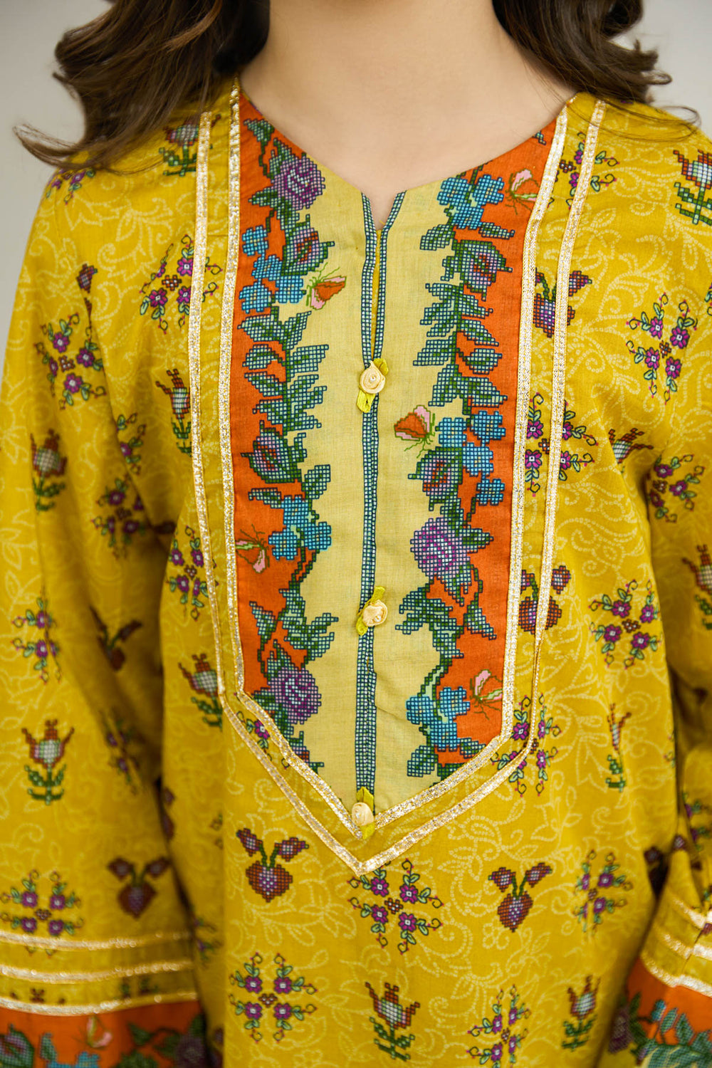 The Mina 2 piece suit is a bright and stylish outfit. Made from soft cotton lawn, it offers breathable comfort with a festive look. Perfect for adding charm to special occasions.