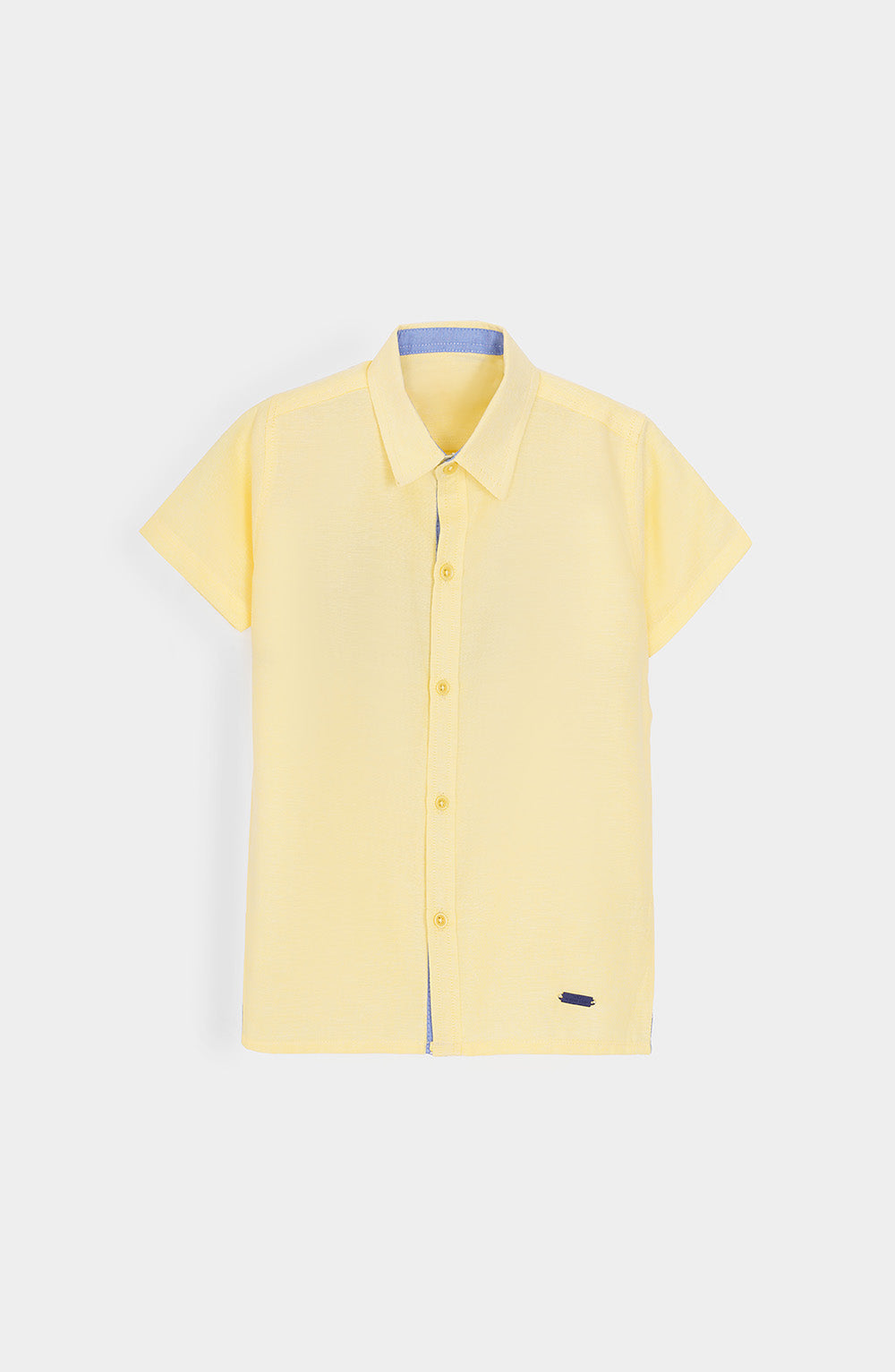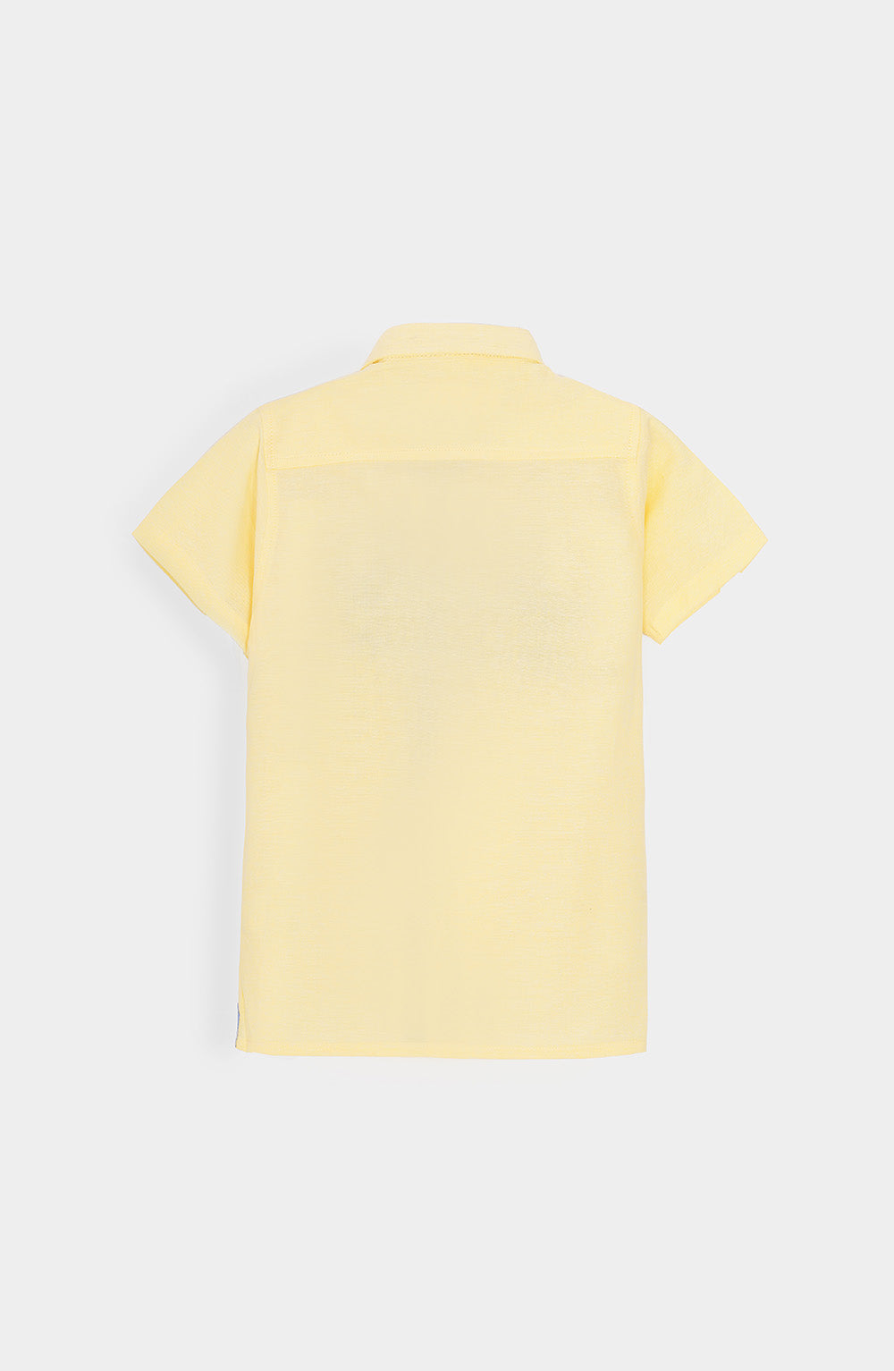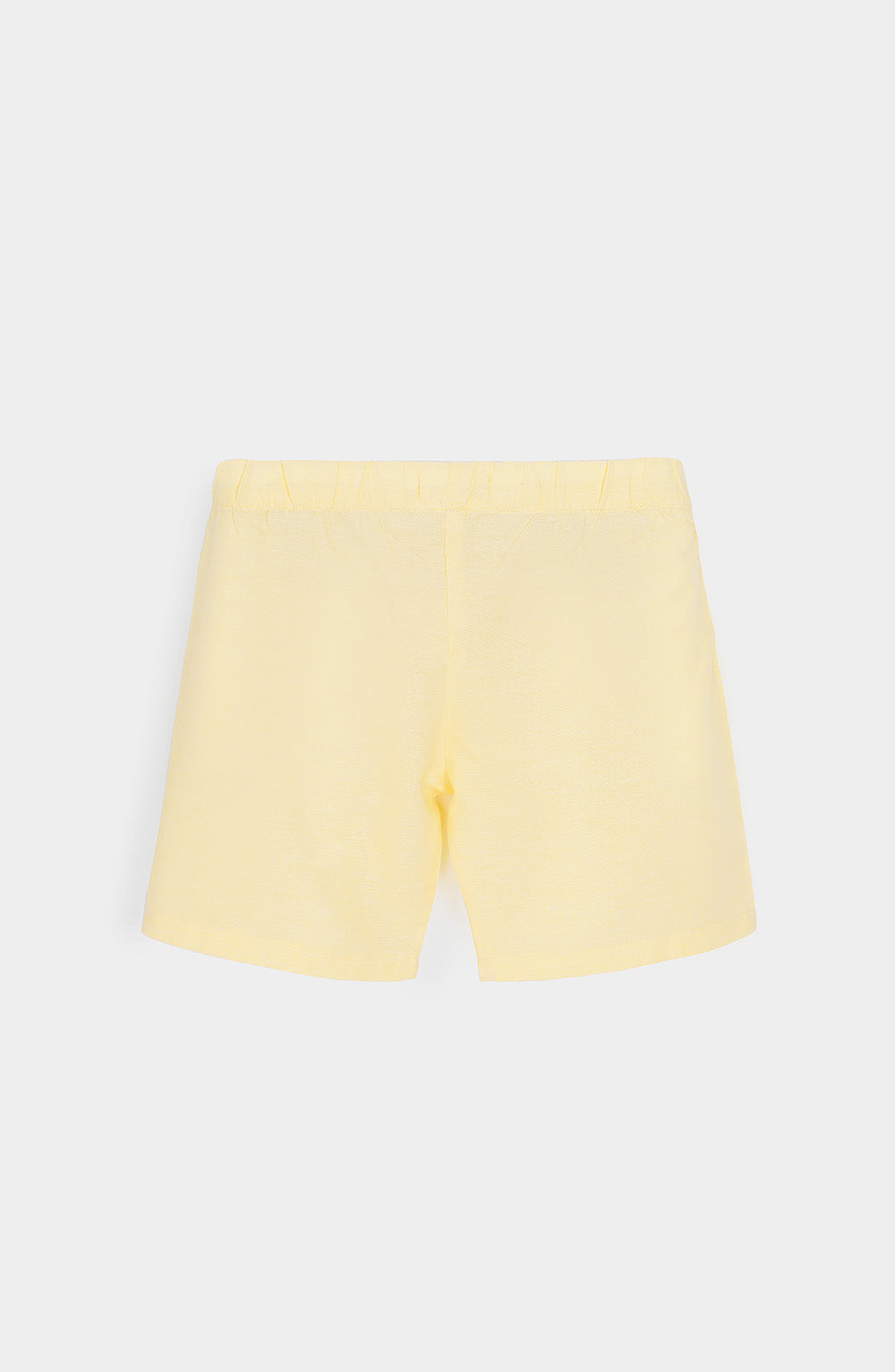 A charming 2-piece chambray suit in a bright yellow shade, crafted from lightweight chambray fabric for a soft feel and comfortable wear.