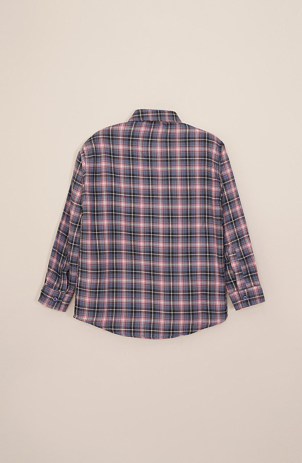 Button-front woven shirt in twill satin. Features wide sleeves and a clean, straight hem. Smooth fabric with a soft hand-feel.