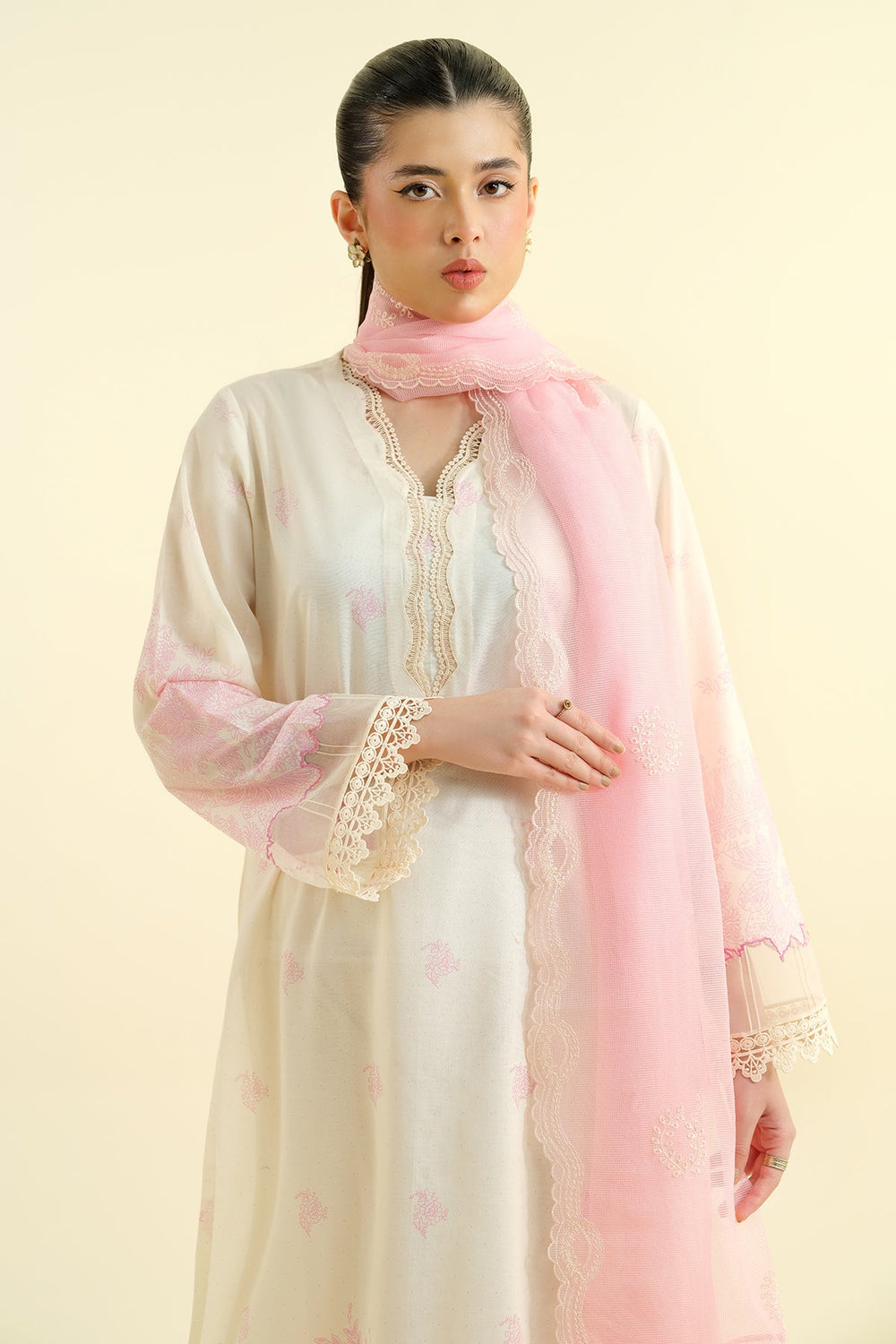 3 Piece - Embroidered Slub Khaddar Suit - C6407