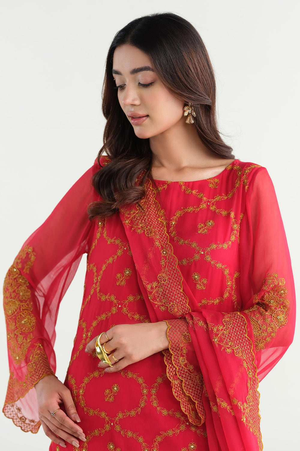 3 Piece - Embroidered & Embellished Bamber Chiffon Suit - E1716