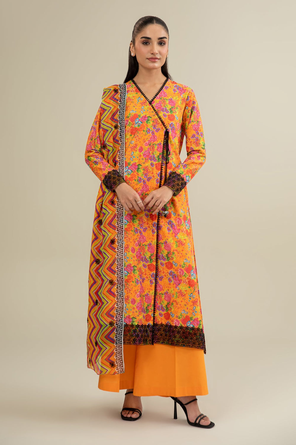 3 Piece - Printed & Embroidered Slub Khaddar Suit - C6401