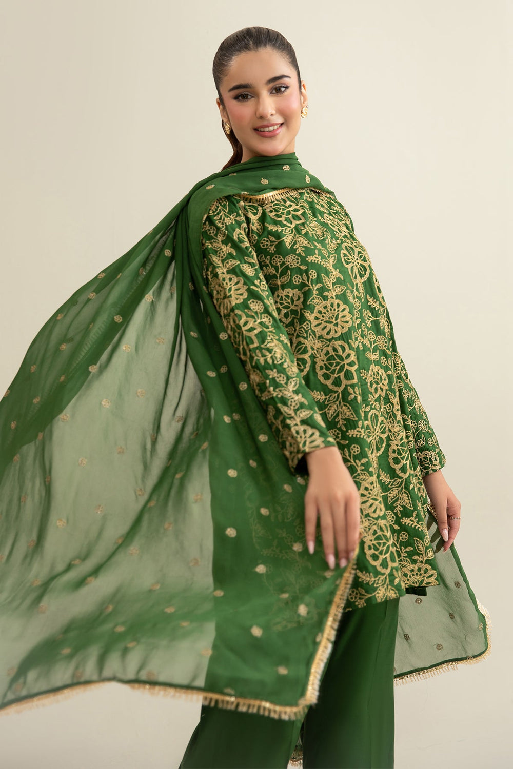 3 Piece - Embroidered Silk Suit - KPS25-P3195