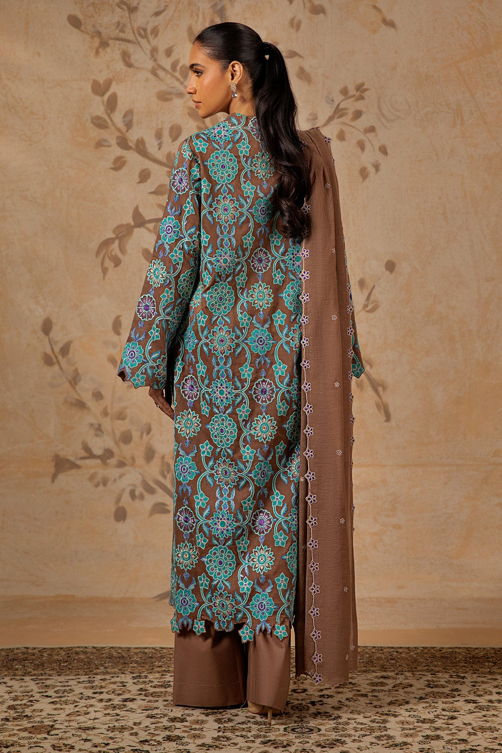 3 Piece - Embroidered Slub Khaddar Suit - C6407
