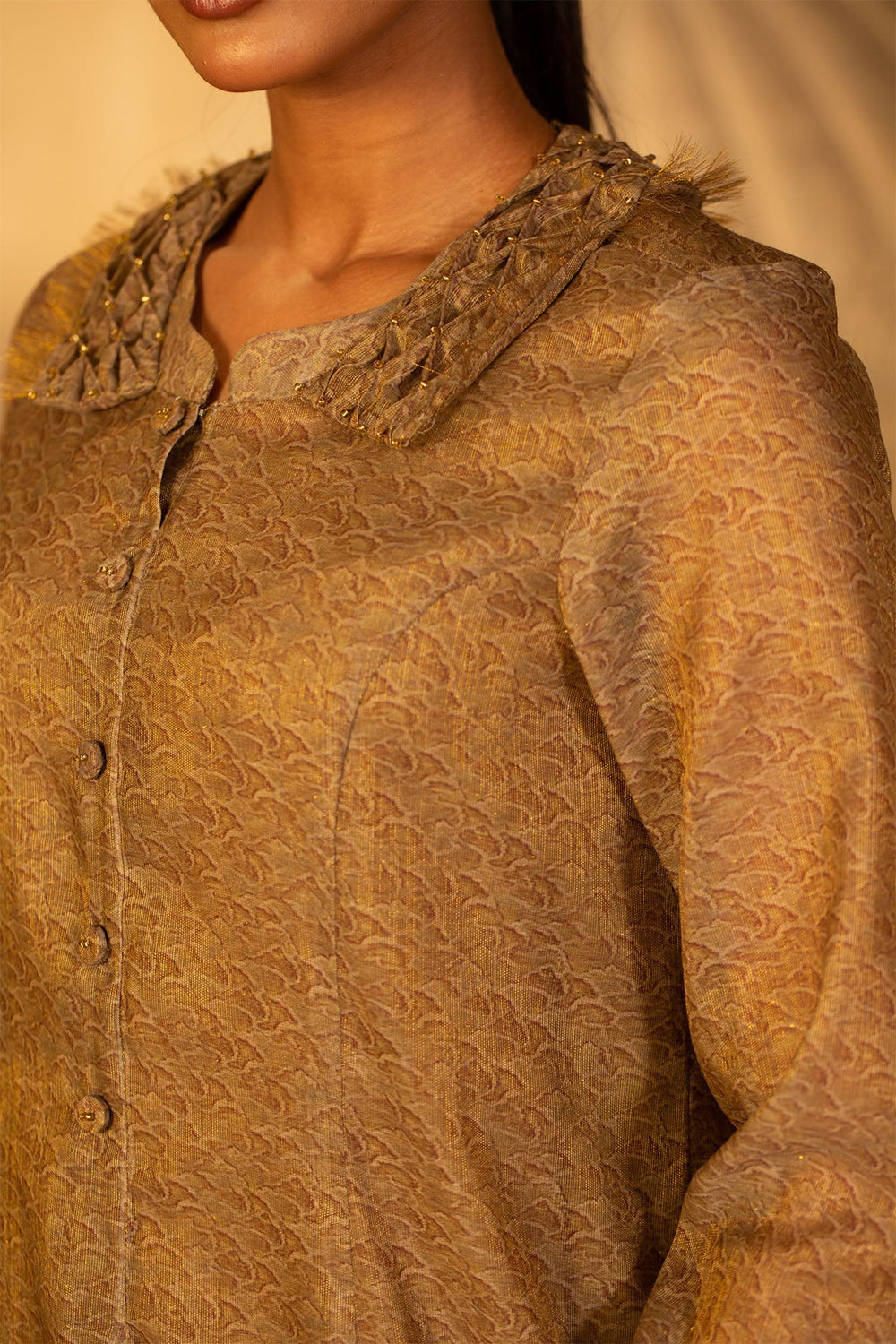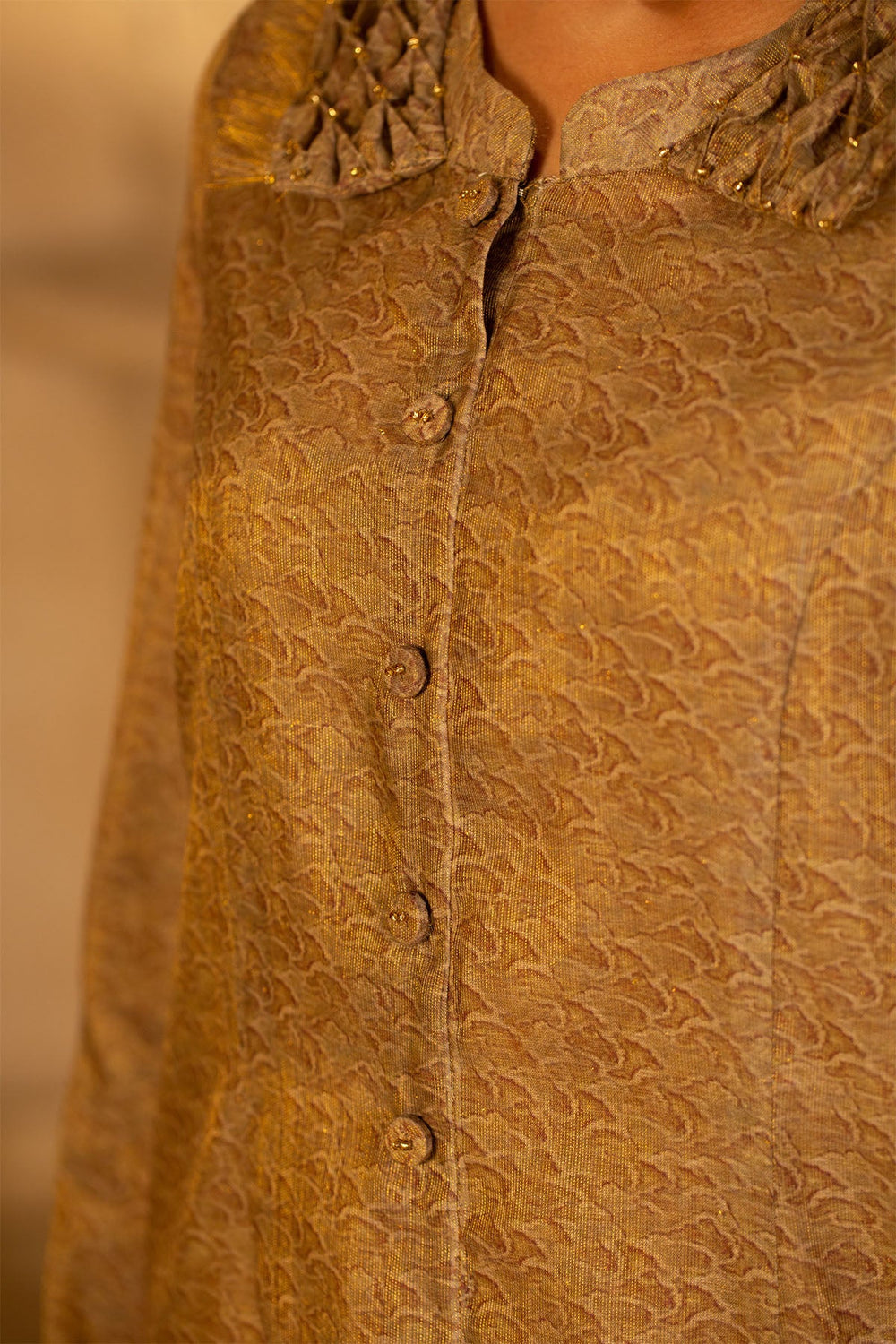 2Pc Printed & Embellished Nap Shimmer Shirt Paired With Dyed Georgette Camisole