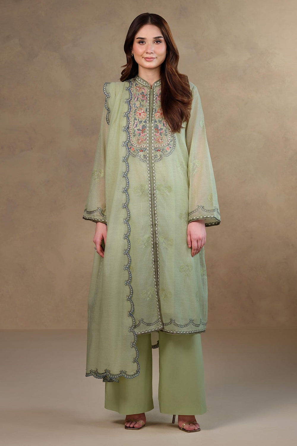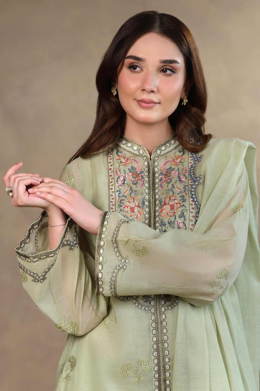 3 Piece - Embroidered Slub Khaddar Suit - C6407