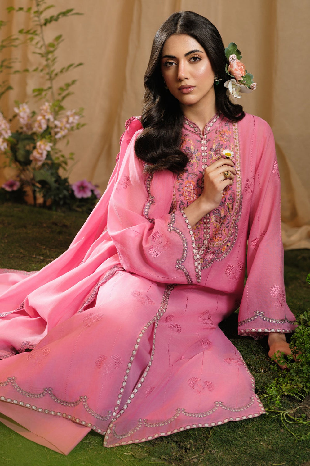 3 Piece - Embroidered Slub Khaddar Suit - C6407