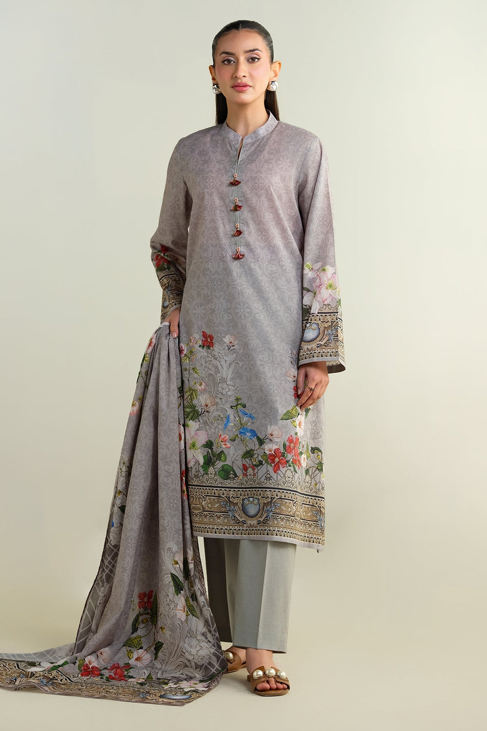 3 Piece - Printed & Embroidered Slub Khaddar Suit - C6441