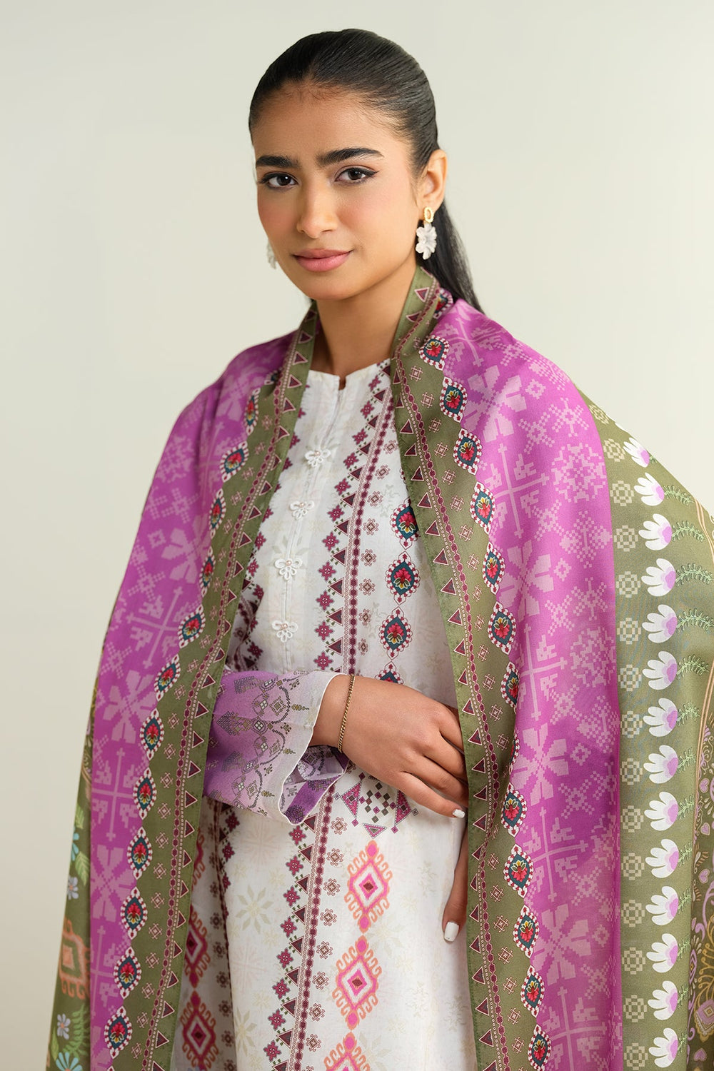 3 Piece - Printed & Embroidered Slub Khaddar Suit - C6401