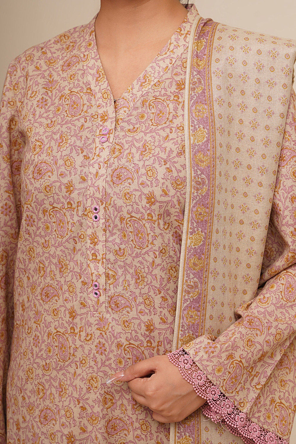 3 Piece - Printed & Embroidered Khaddar Suit - C6420