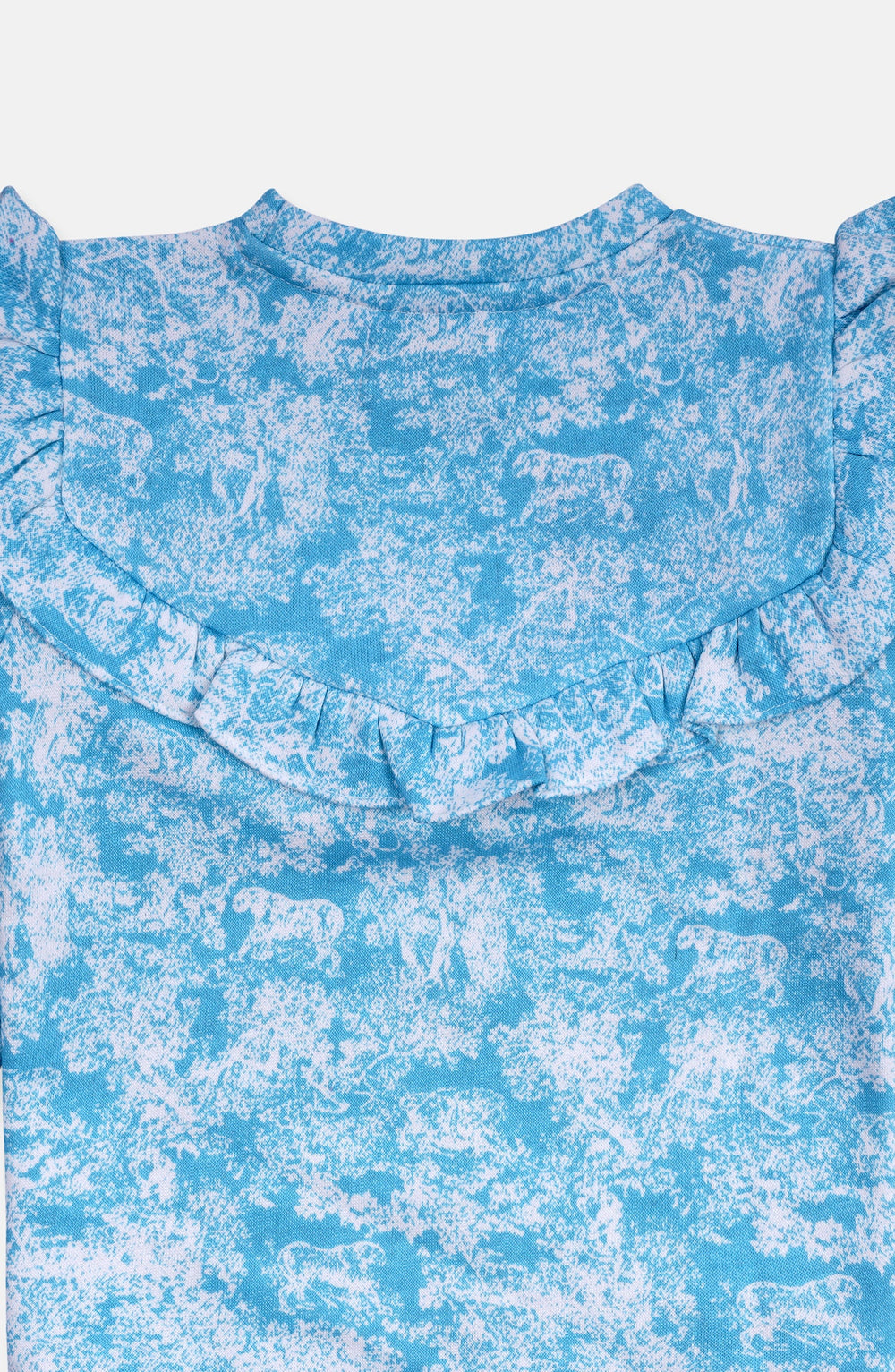 Toil De Jouy Print Sweatshirt With Cute Frilled Yoke In French Terry