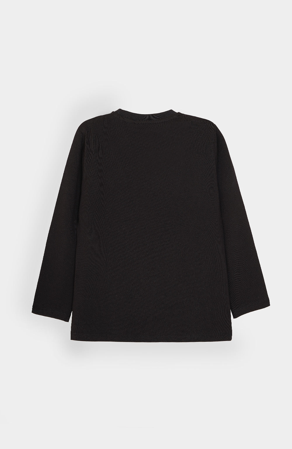 The Printed T-Shirt in Black is a soft, lightweight essential for little boys. Crafted from breathable single jersey knitwear, it ensures all-day comfort and ease of movement. The playful print adds a fun touch, making it a great pick for everyday wear, playtime, or casual outings.
