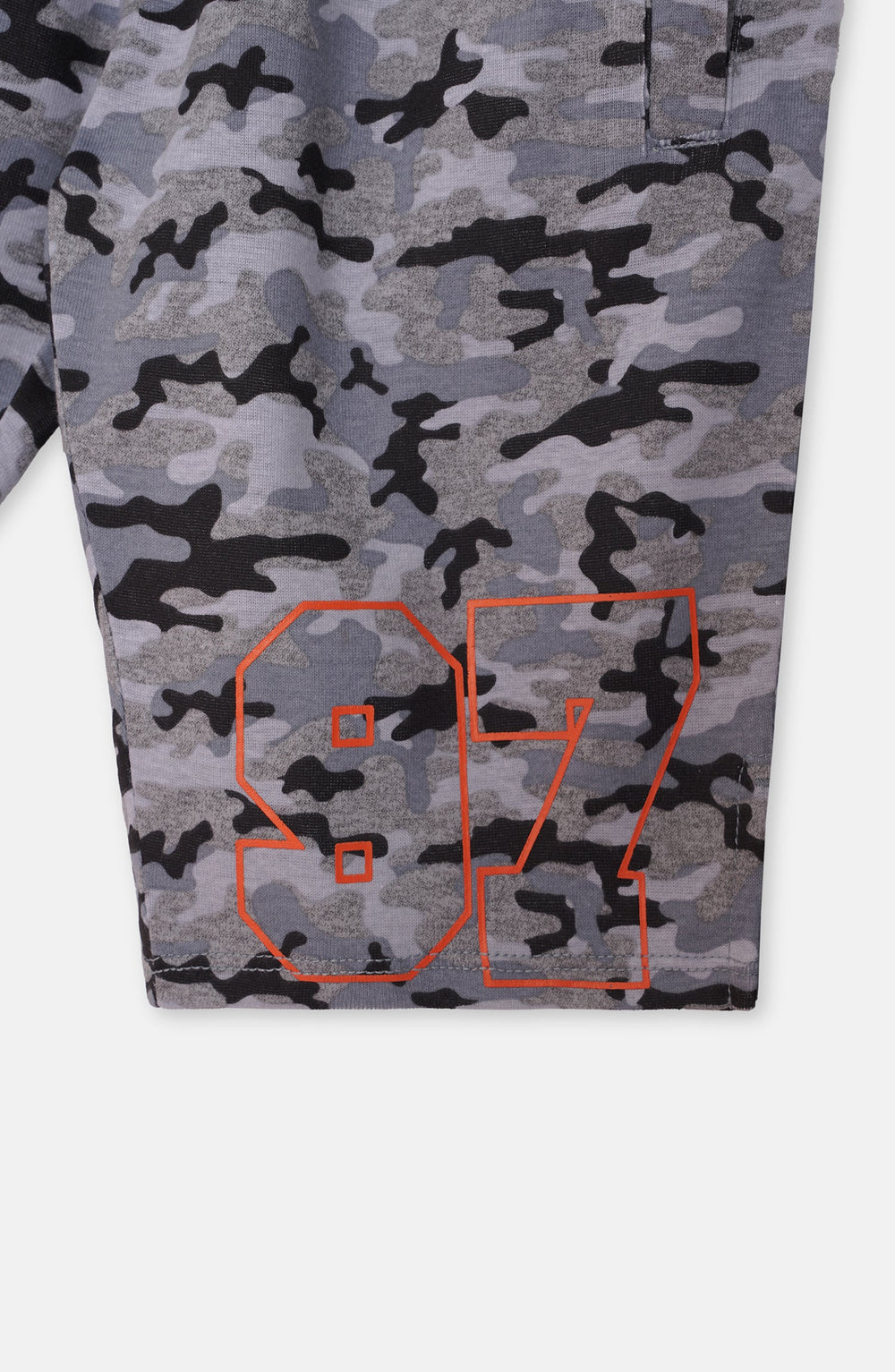 There Knit Shorts Cut From French Terry Fabric Have An Elasticated Waistband With Drawstrings, Along With A Cross-Side Pocket And Printed Graphic On The Bottom Right.