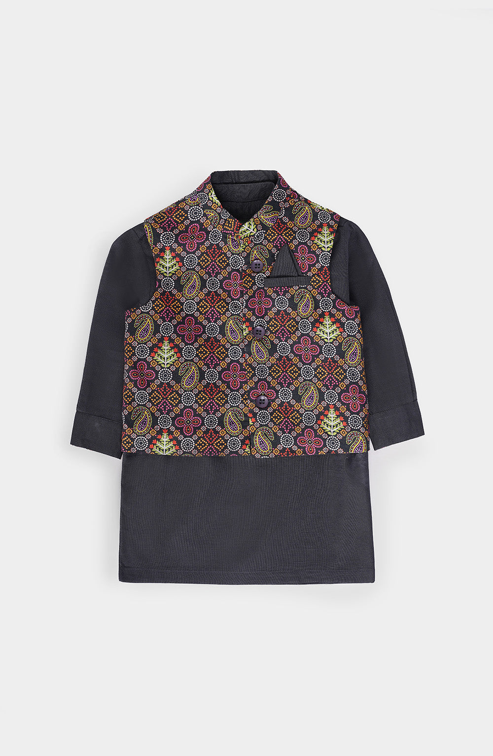 A smart printed waistcoat 3 piece suit in a classic black shade, crafted from premium slub khaddar fabric for a comfortable feel and refined finish. This leisure club style delivers an elegant yet casual look perfect for special occasions and everyday wear.