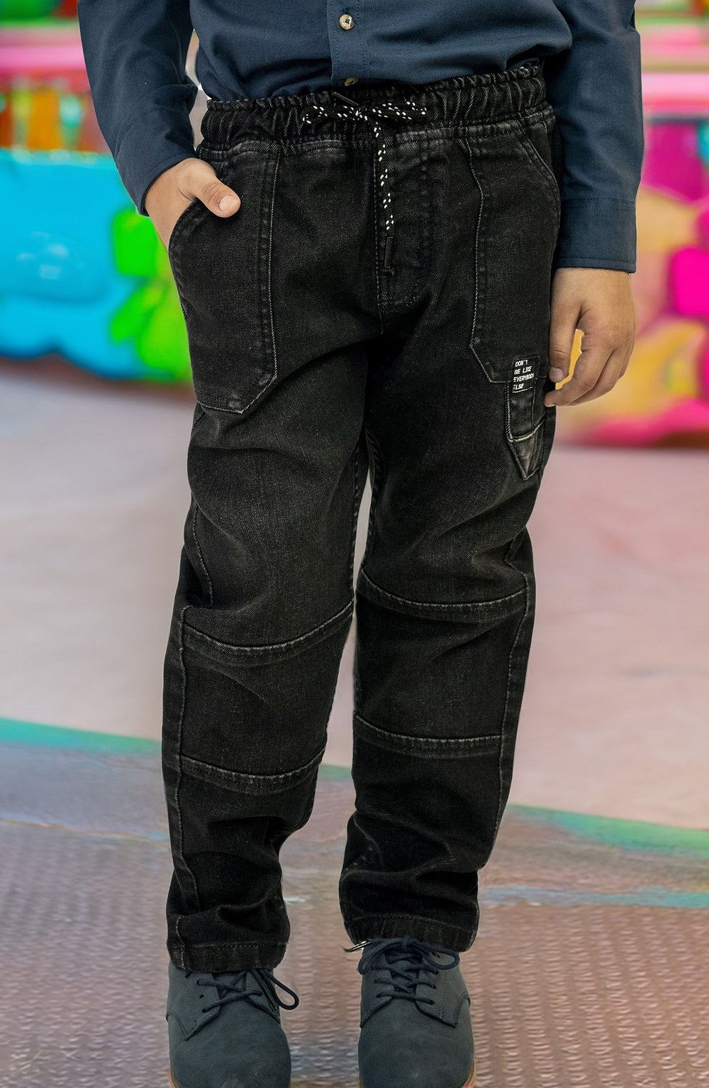 Infant Boys Denim Jeans In Black Color With Adjustable Draw Cord