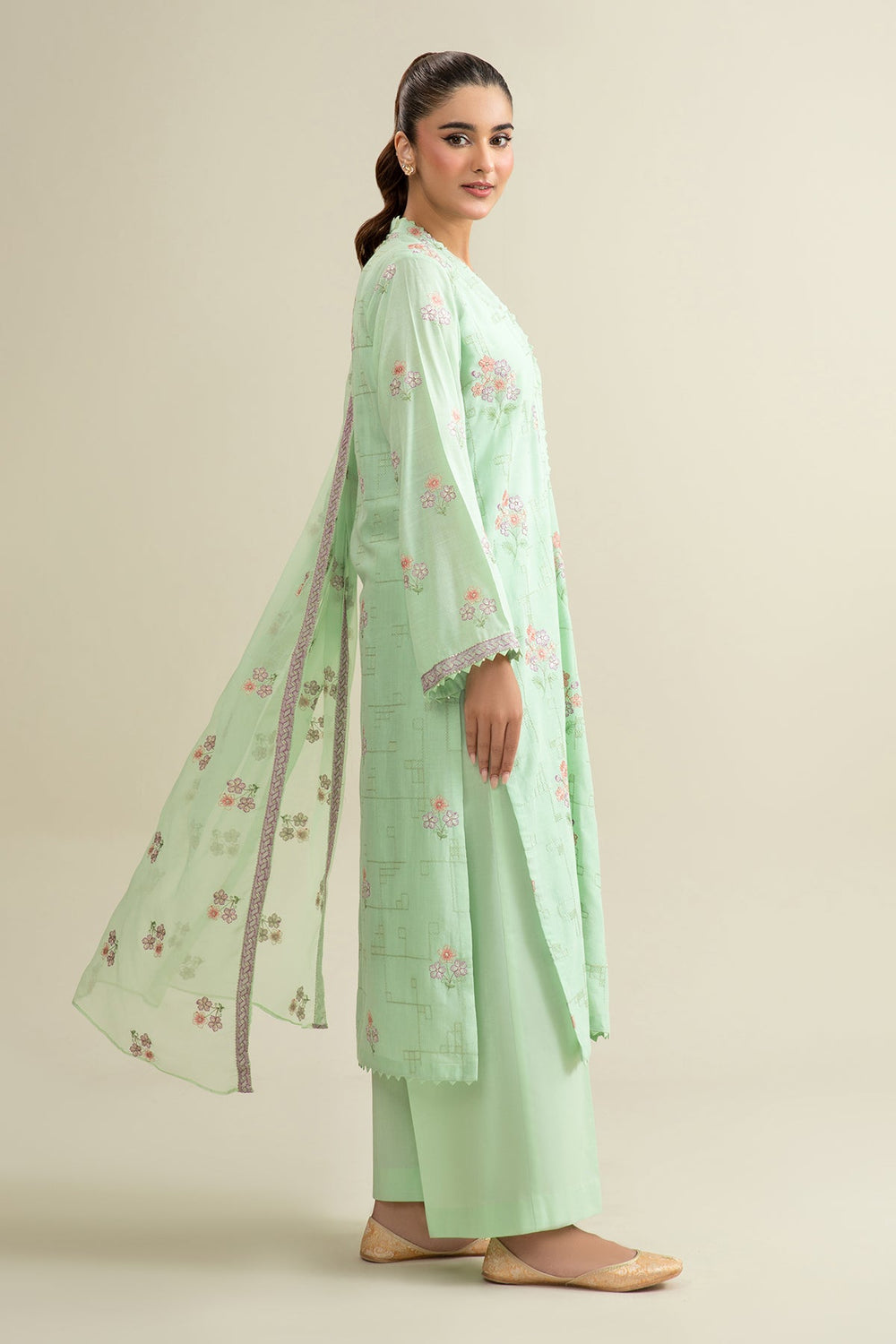 3 Piece - Embroidered Slub Khaddar Suit - C6407