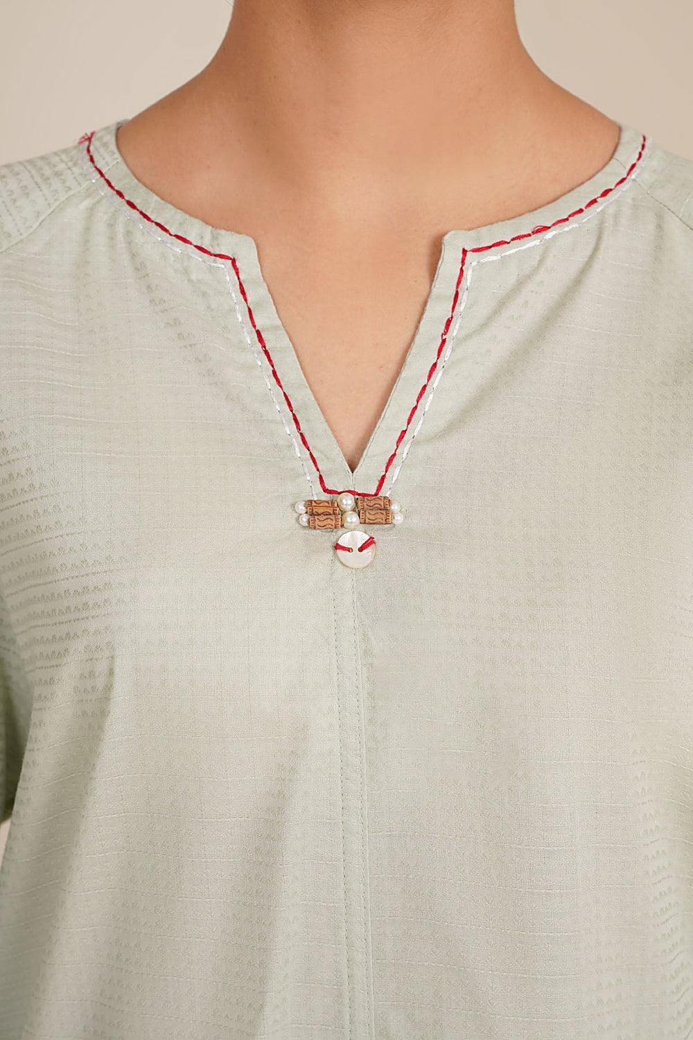 Embellished Round Neckline With V-Slit, Full Sleeves, Long Shirt