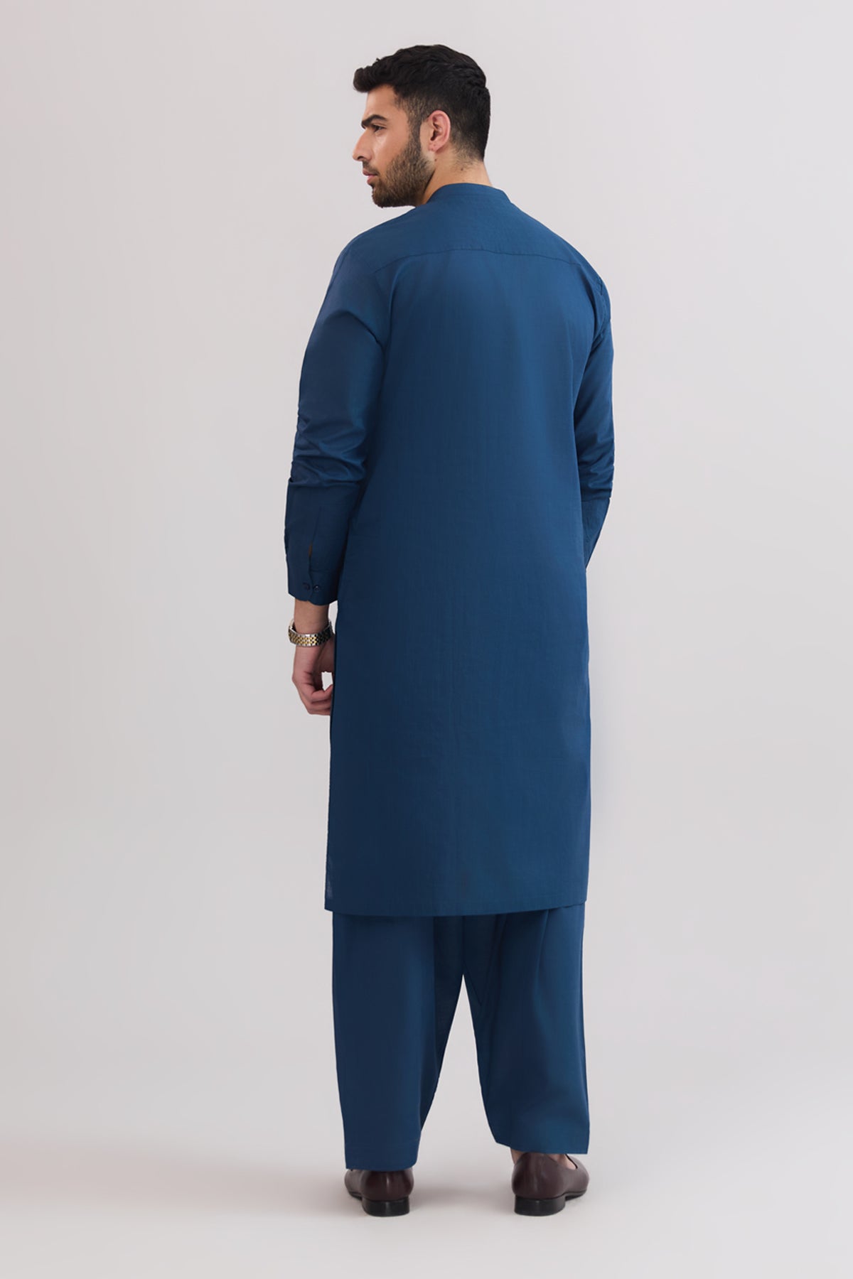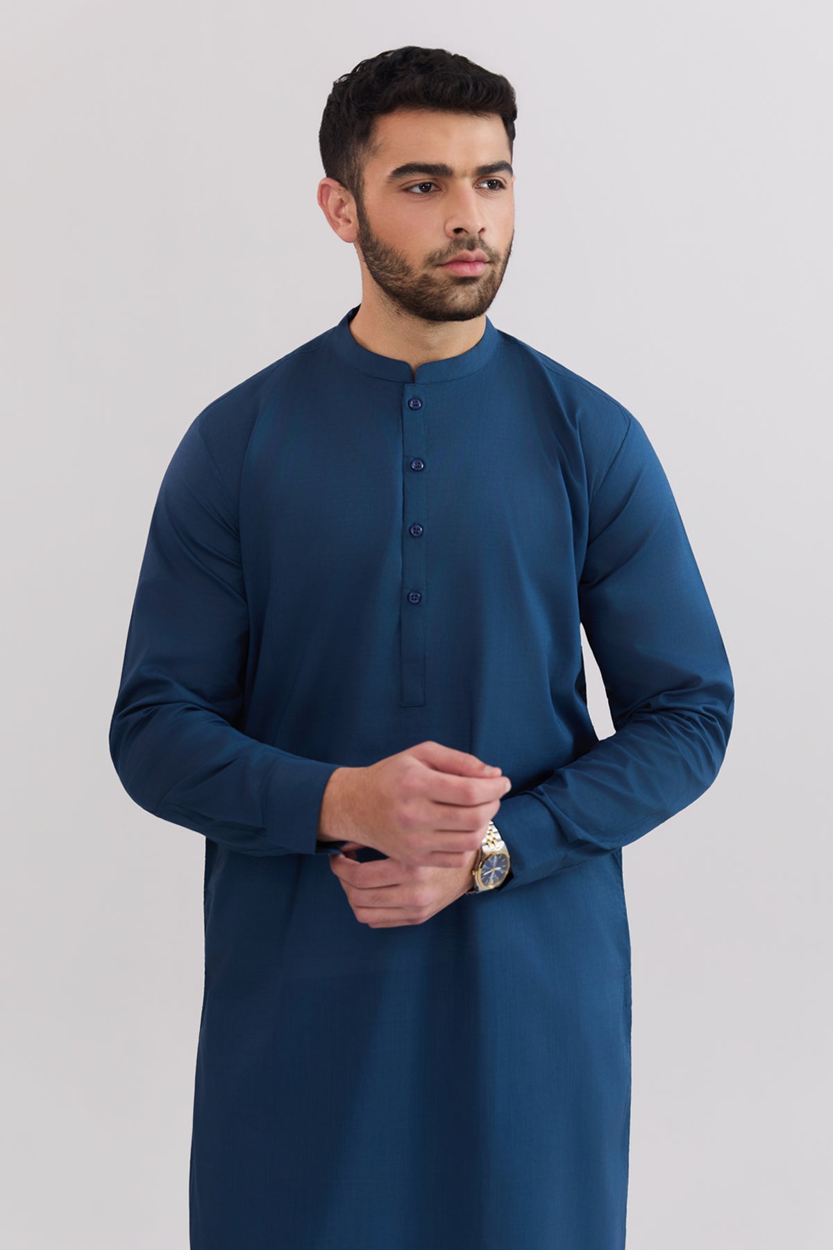 Closure: Button Front Placket, Mandarin Collar, Cuffs & Wide Hem Shalwar