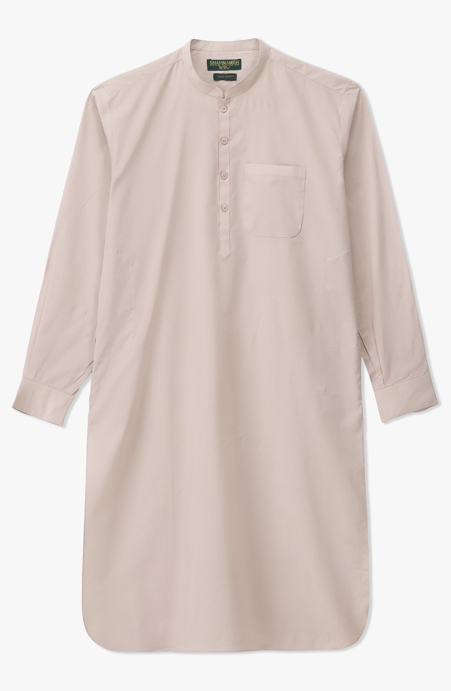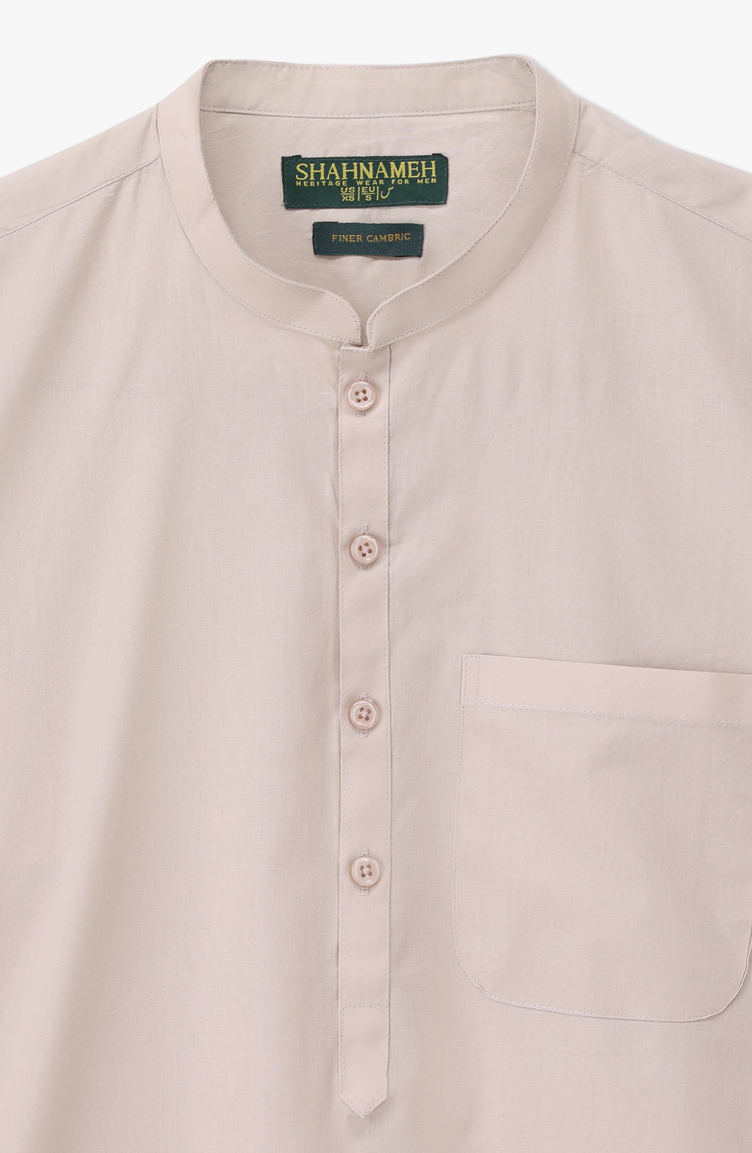 A timeless beige Awami suit crafted from cotton cambric, offering lightweight comfort, breathability, and a smooth refined finish. Designed with a classic kameez and wide hem shalwar, it delivers traditional elegance ideal for everyday wear and formal occasions.