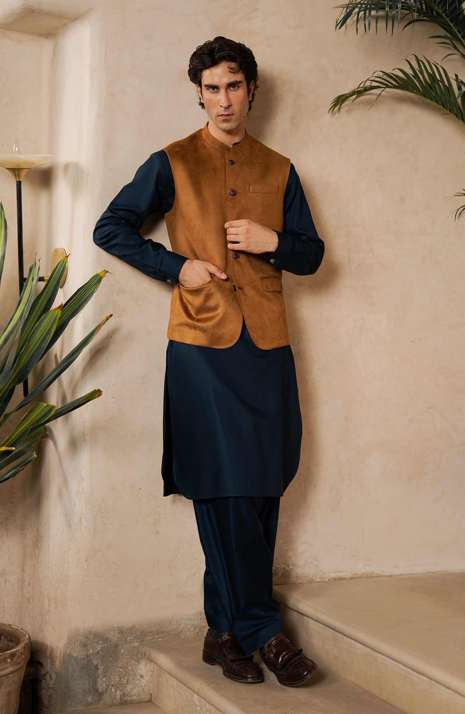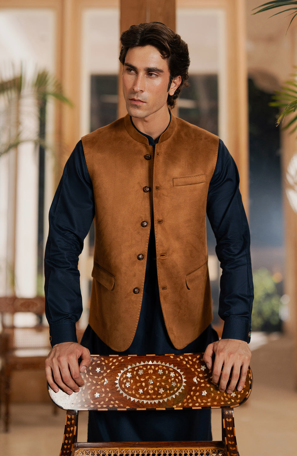 A classic light brown suede waistcoat designed to elevate your smart-casual look with comfort and sophistication.