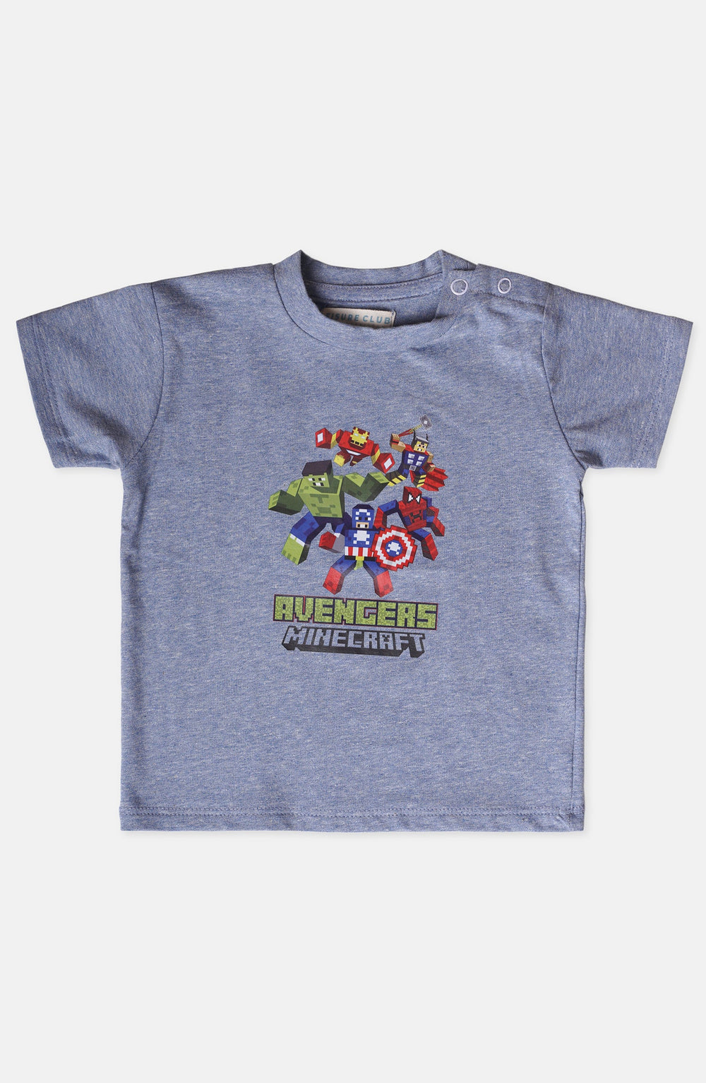 A Grey Colored Single Jersey T Shirt Featuring A Minecraft Graphic With A Regular Fit, A Round Neckline And Half Sleeves