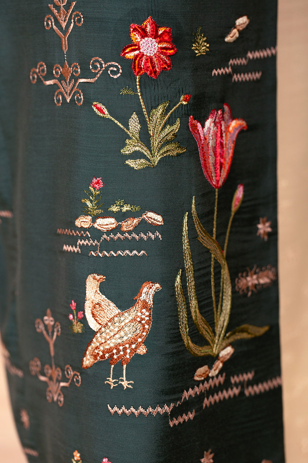 Dyed & Embroidered Pk Raw Silk Long Jacket