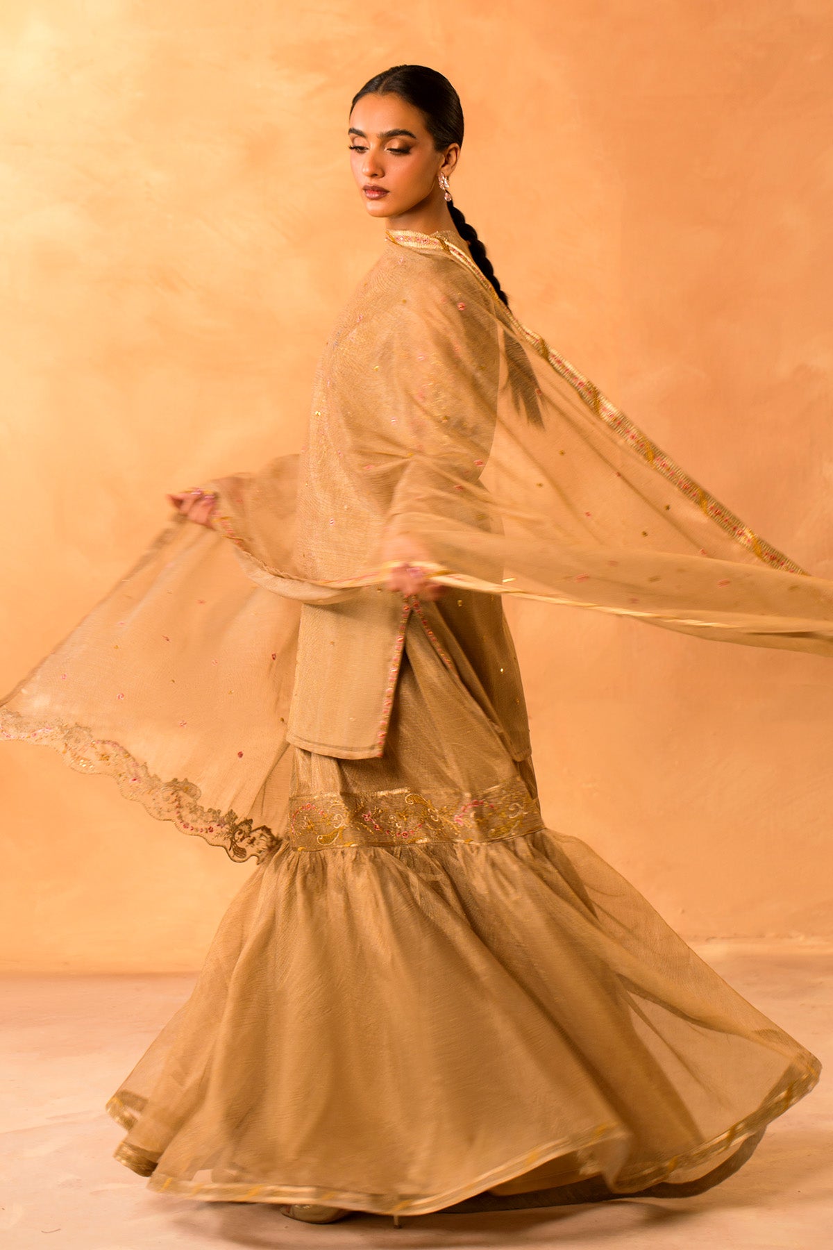 Printed & Embroidered Neps Net Gharara