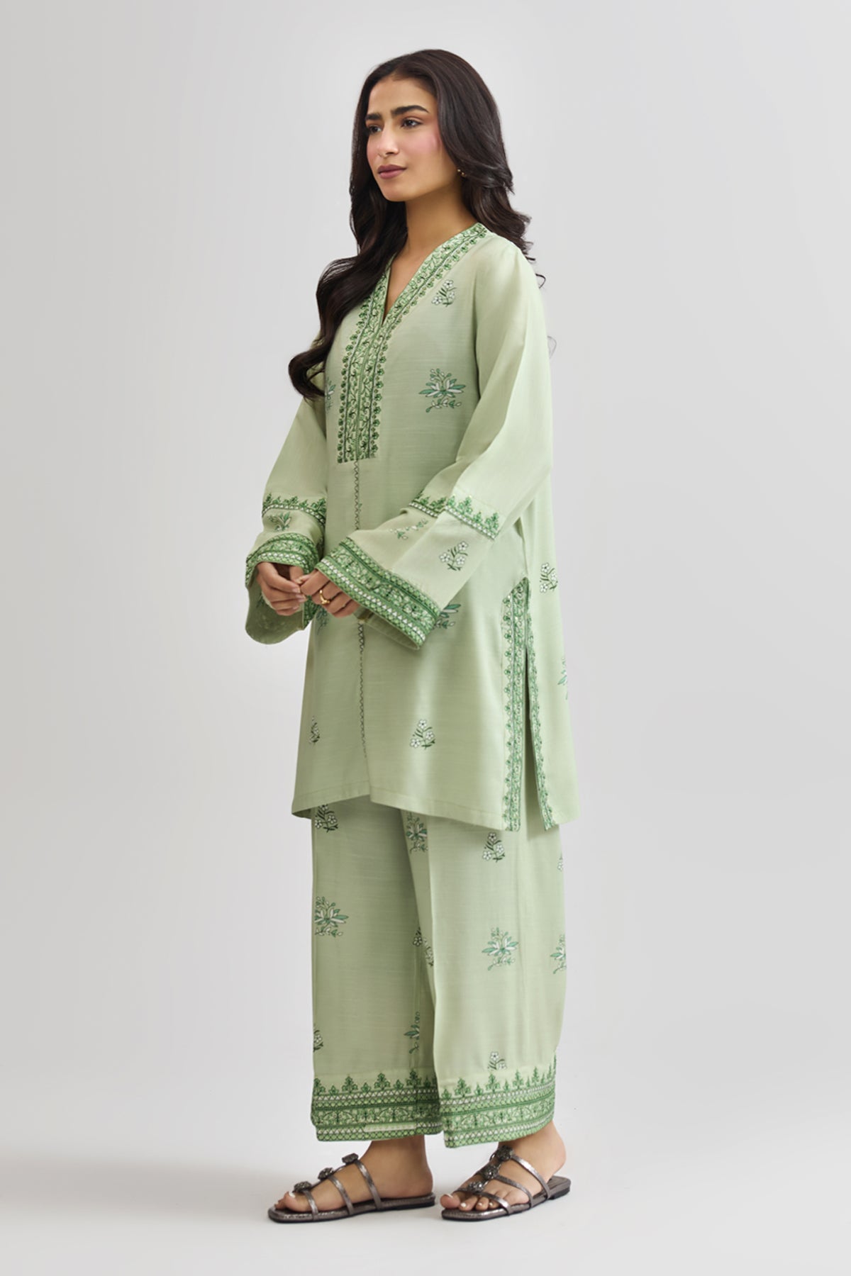 V-Neckline, Embroidered Neckline & Sleeves, Printed & Embroidered Shirt