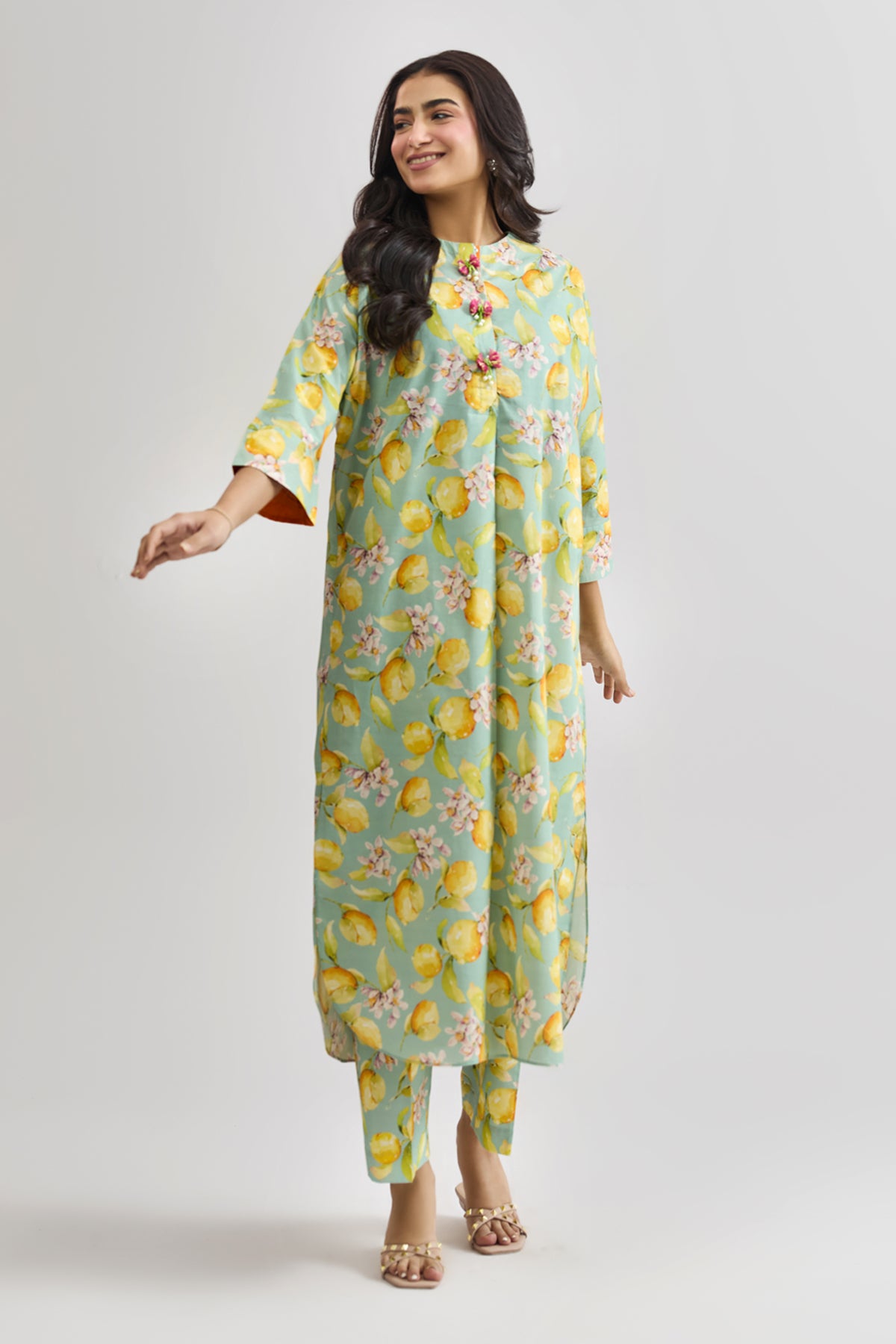 Round Neckline, Embellishment at Neckline, Full Sleeves, Round Hem, Printed Long Shirt