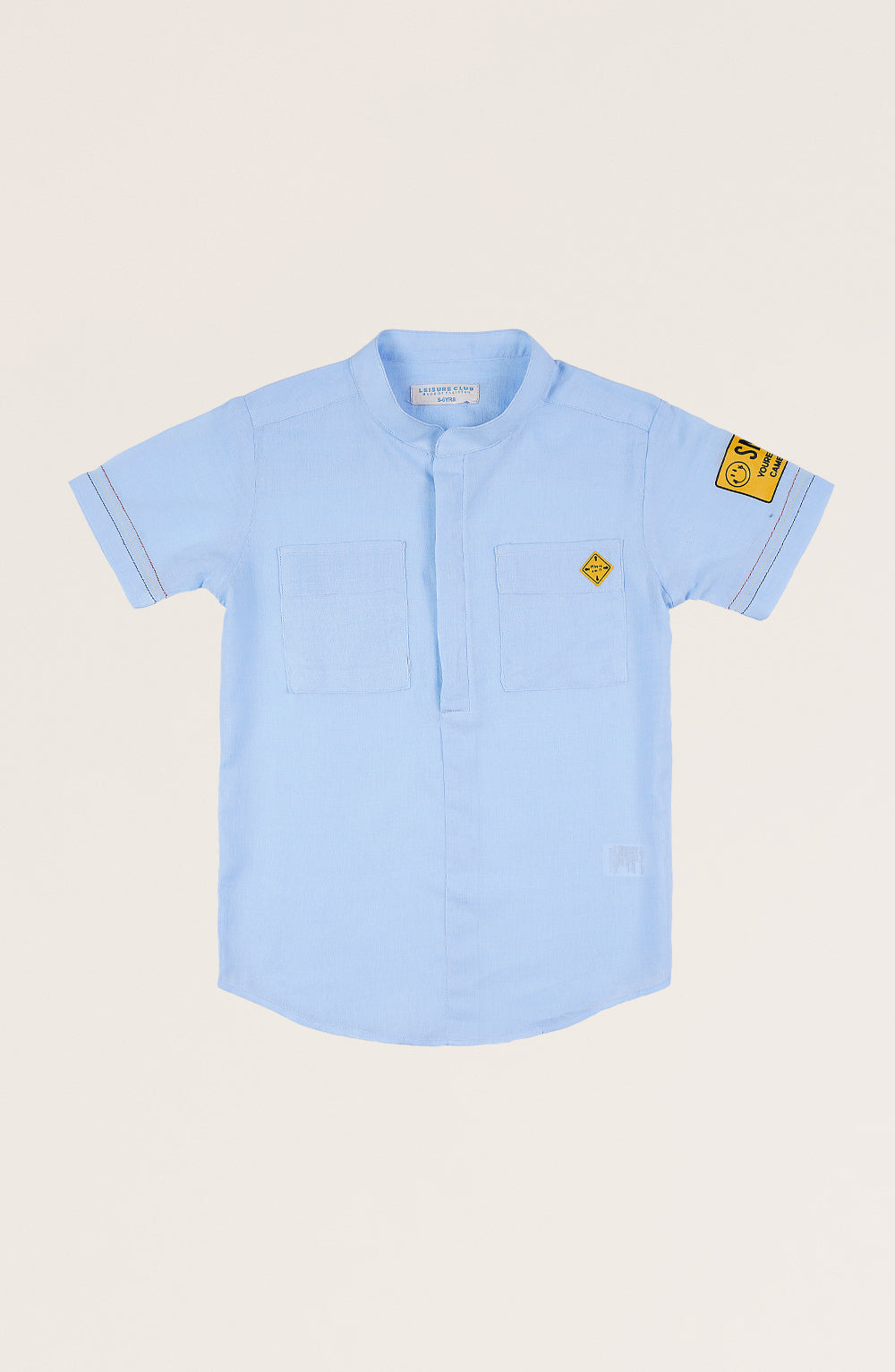 Button-up woven shirt featuring a collar and half sleeves. Designed in corduroy for a durable and comfortable texture.