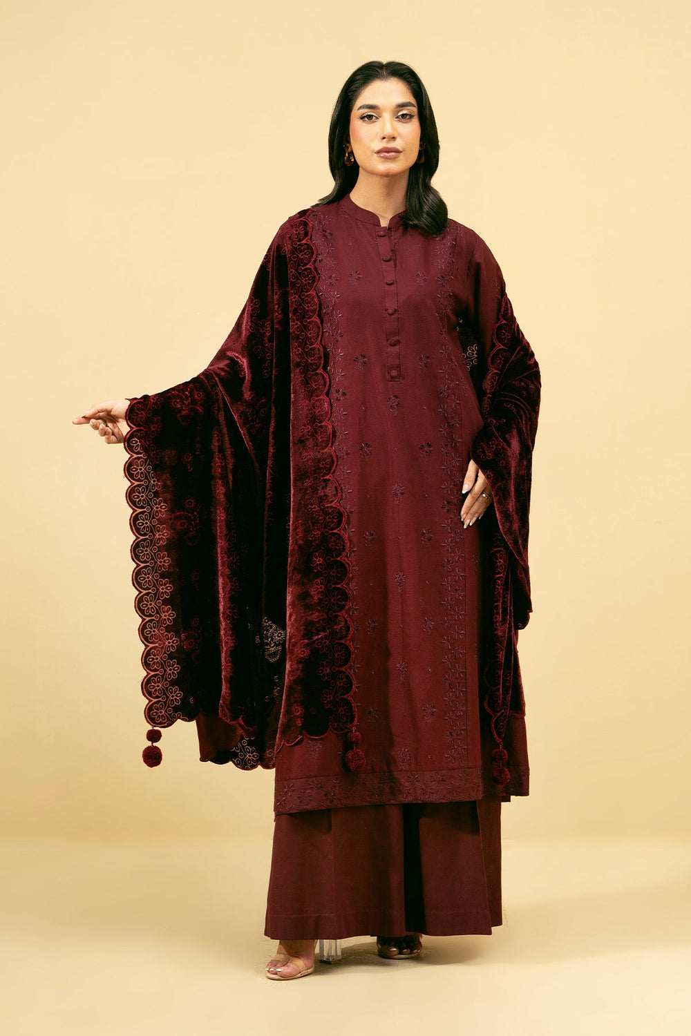 3 Piece - Printed & Embroidered Khaddar Suit - C6397