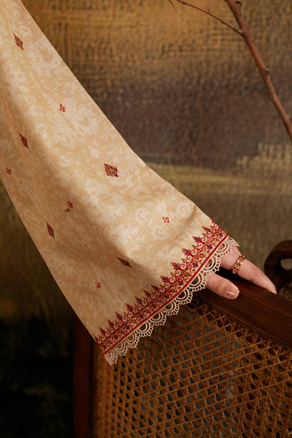 Printed & Embroidered Wider Width Khaddar Sleeves 0.66 M