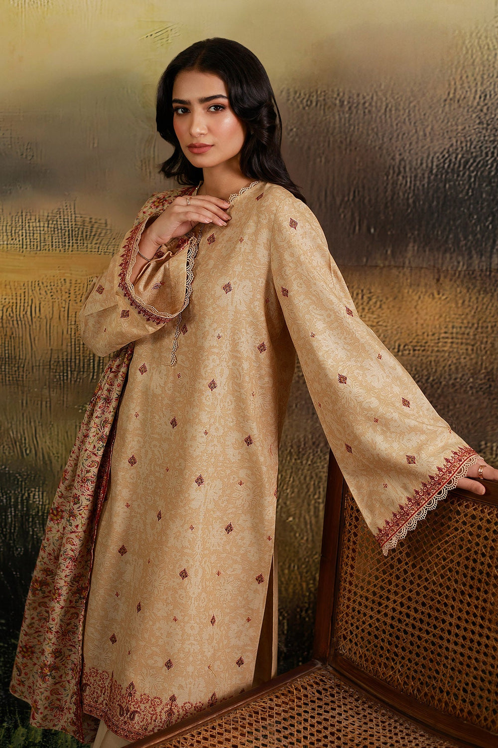 3 Piece - Printed & Embroidered Khaddar Suit - C6389