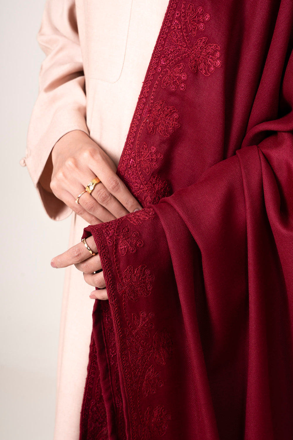 Dyed & Embroidered Swati Wool Dupatta 2.5 M