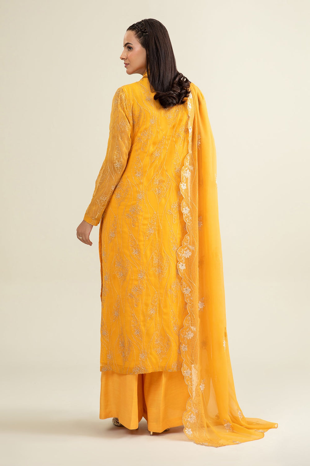 Dyed Embroidered & Embellished Bamber Chiffon Shirt Back 1.75 M