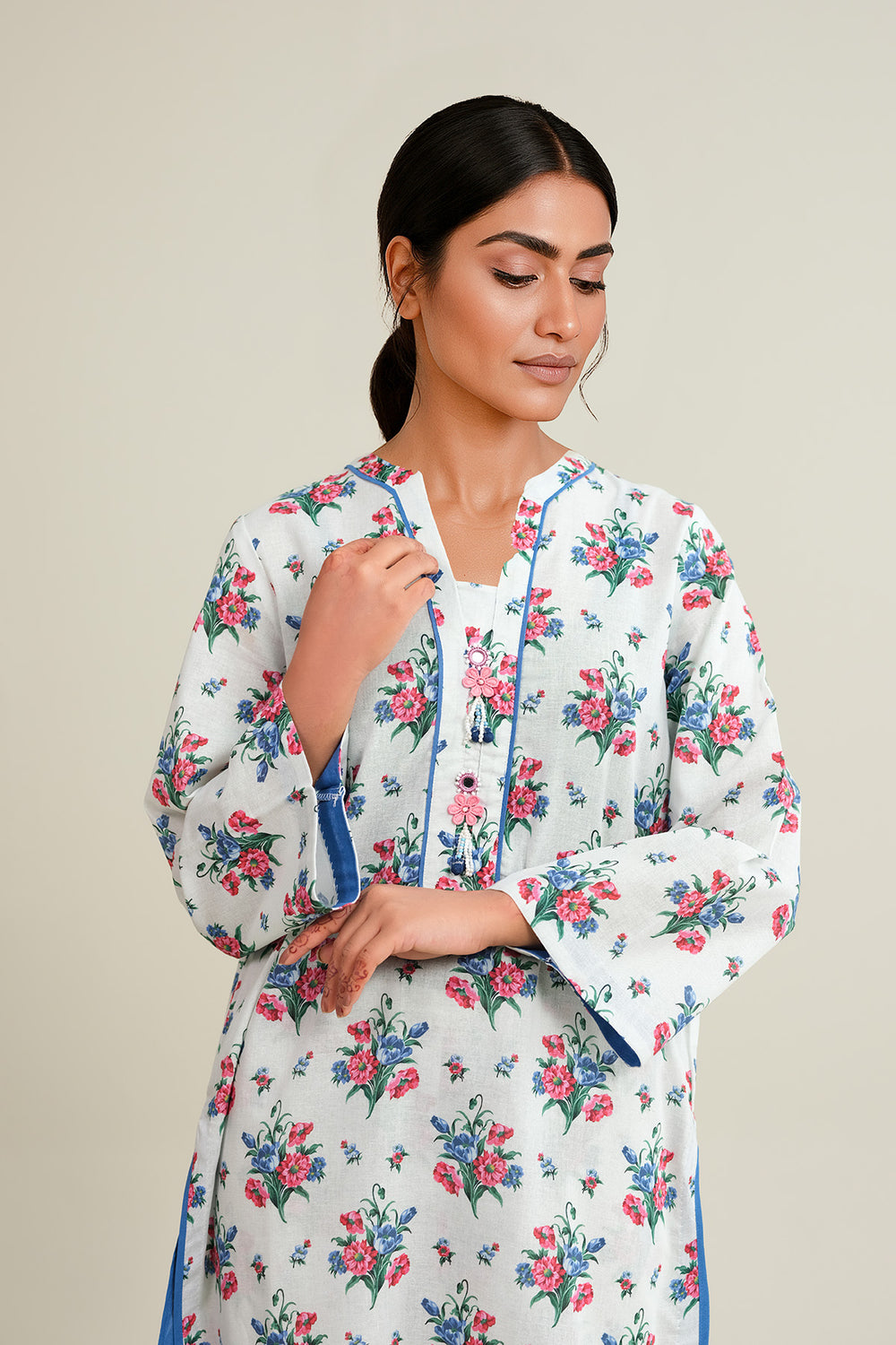 2 Piece - Printed & Embellished Linen Suit - KPW25-P3807