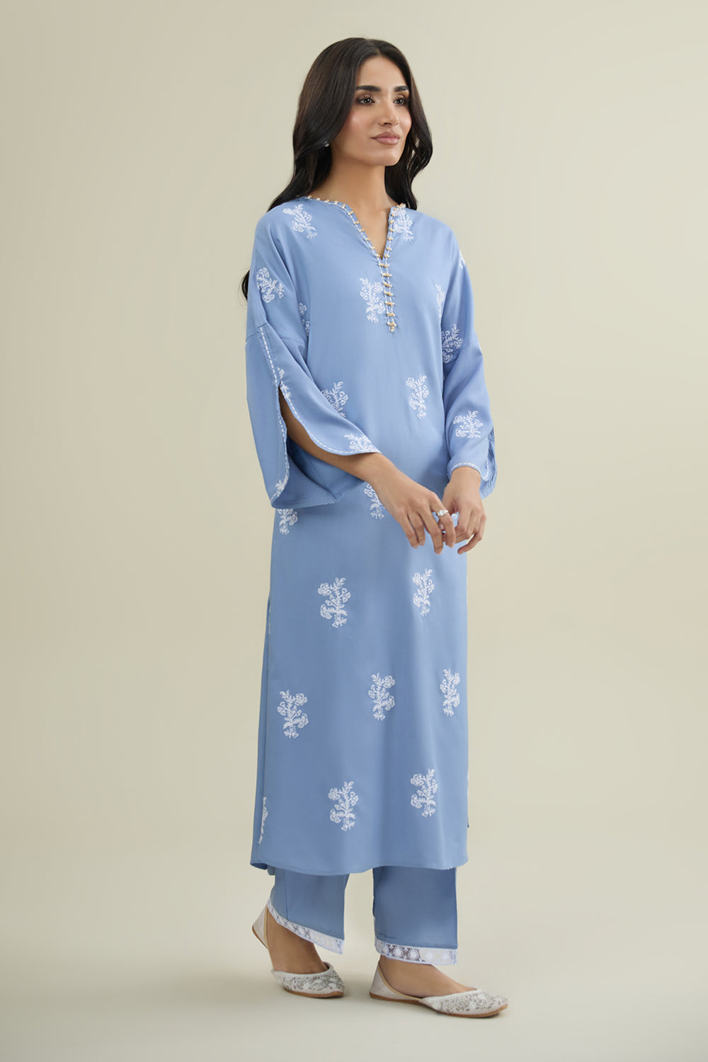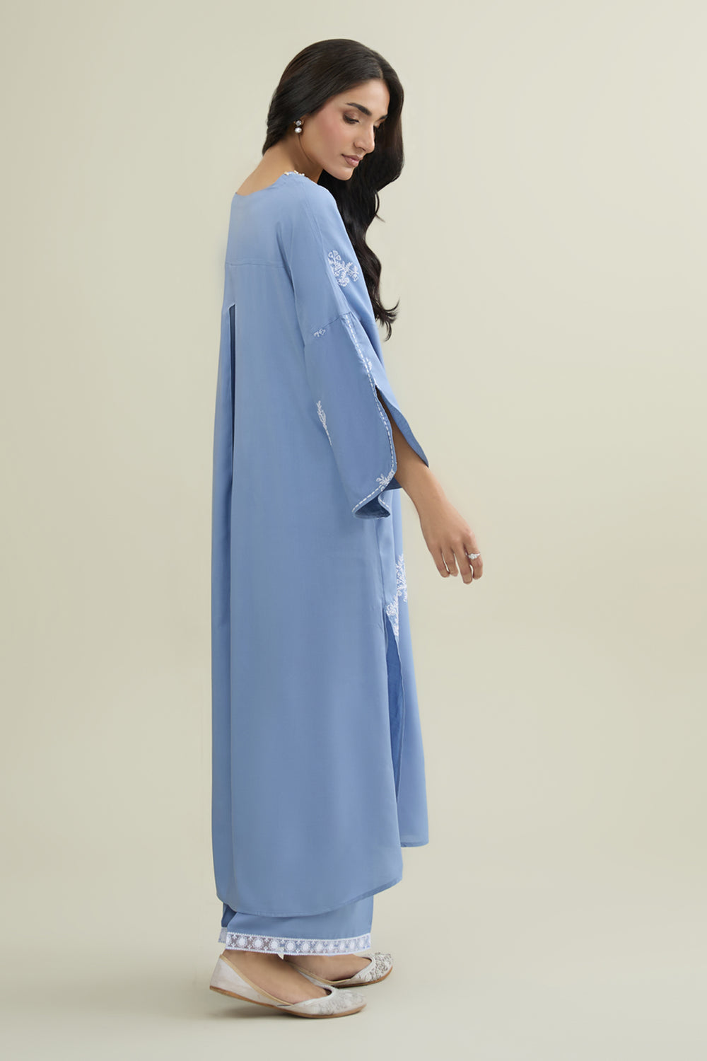 Round Neckline With V-Slit, Full Sleeves, Embroidered Front & Plain Back