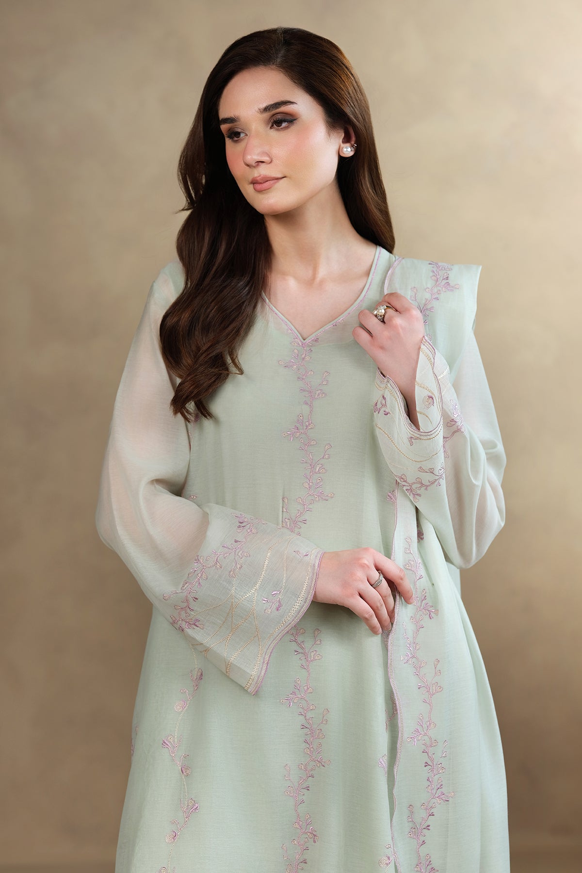 Dyed & Embroidered Kara Cotton Shirt Front 1.25M