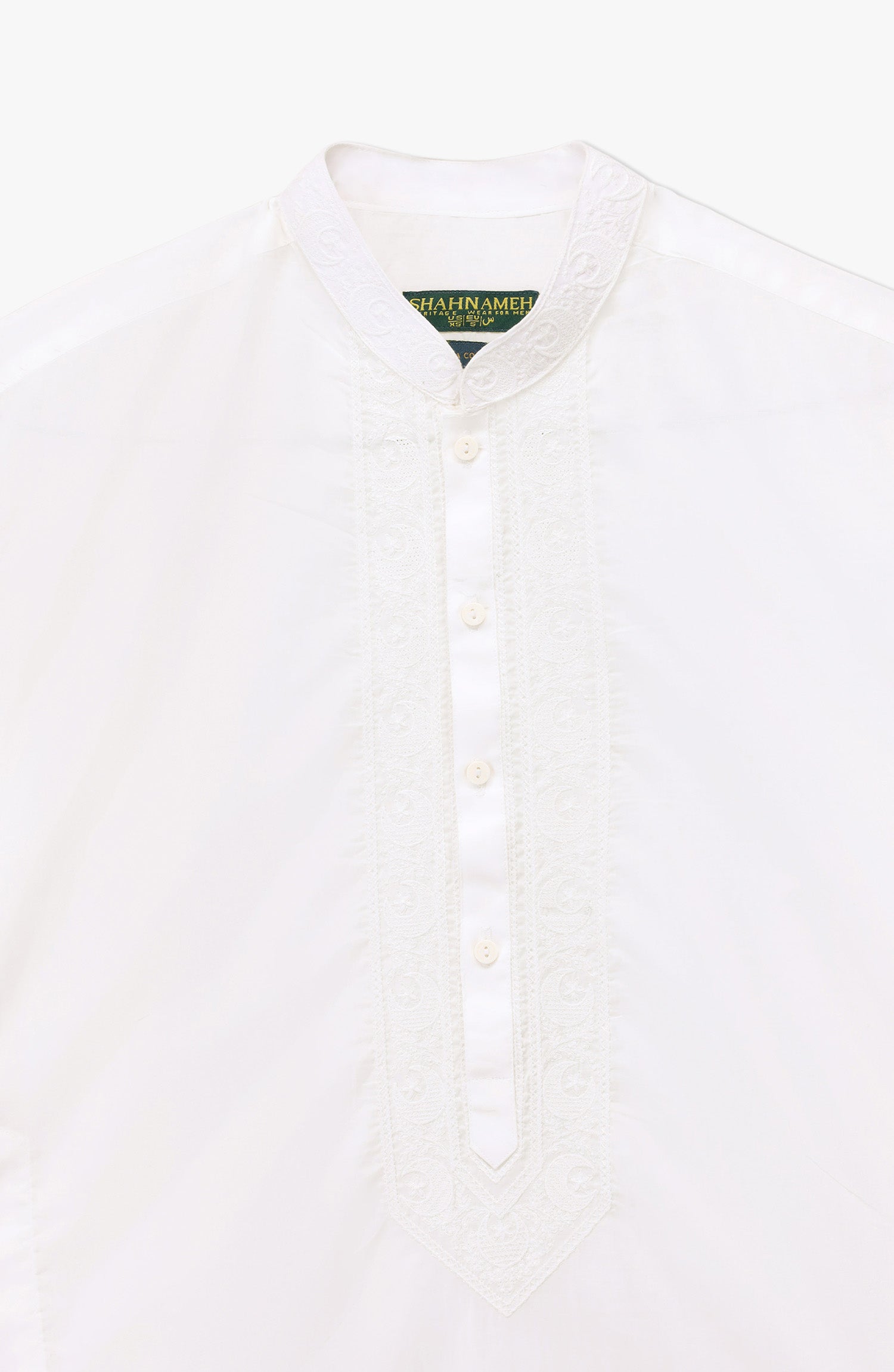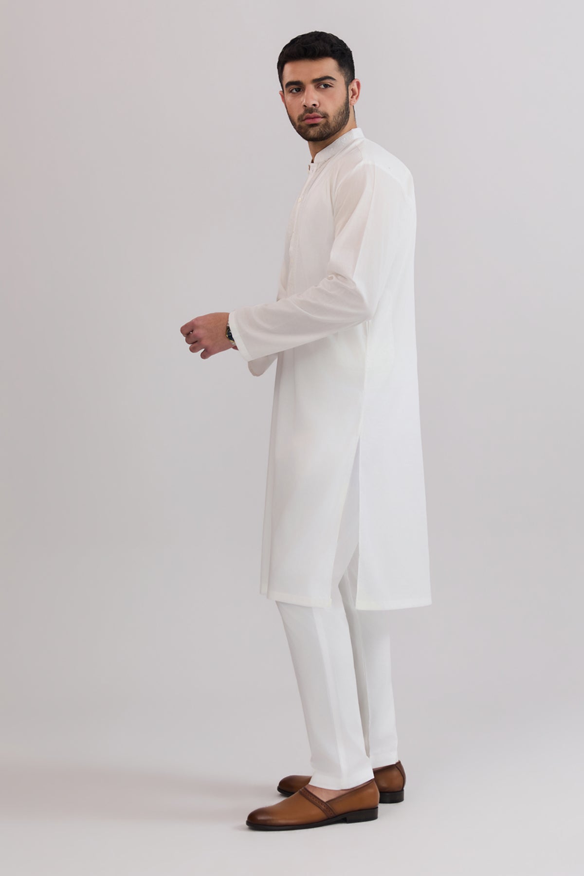 A crisp white Crescent Embroidery kurta crafted from premium Pima cotton lawn, offering exceptional softness, breathability, and all-day comfort. Featuring intricate crescent embroidery and a traditional cut, it blends classic craftsmanship with a refined, elegant look perfect for festive and formal occasions.