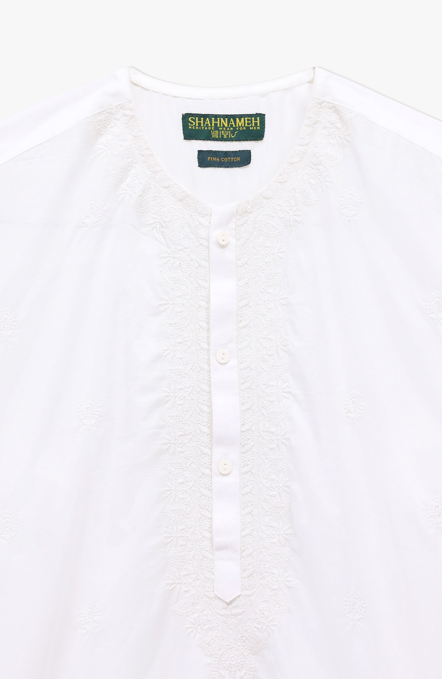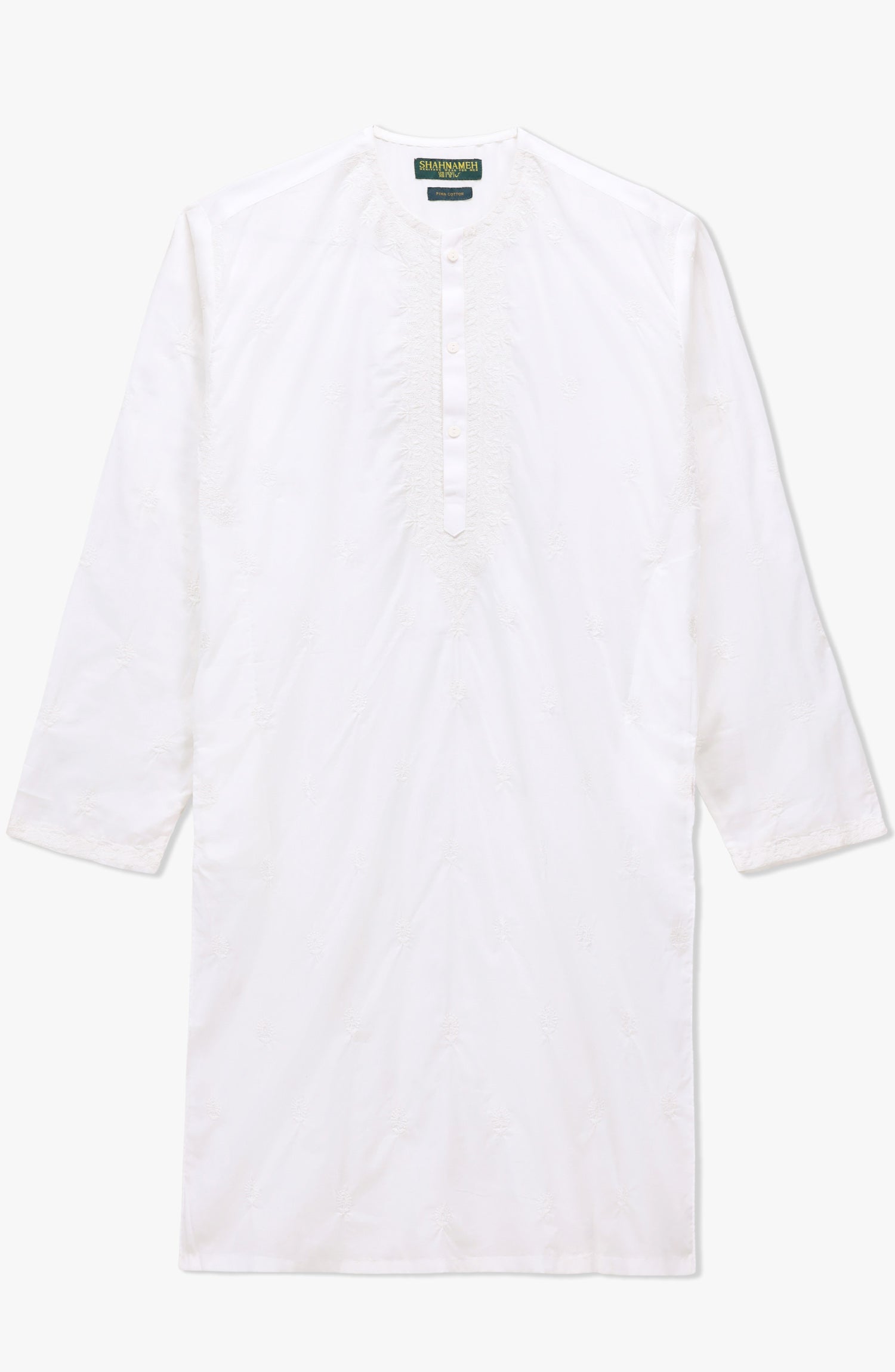 A sophisticated white Chikankari kurta crafted from premium Pima cotton lawn, offering exceptional softness, breathability, and all-day comfort. Featuring detailed embroidery with a magzi gala and traditional cut, it exudes timeless elegance ideal for festive and formal occasions.