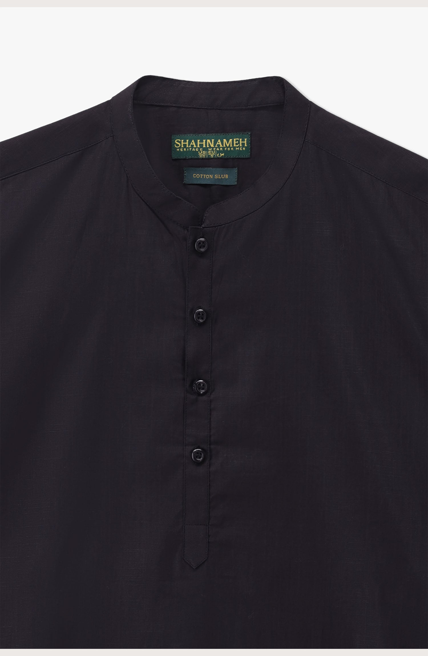 Closure: Mandarin Collar, Button Front Placket, Cuffs & Wide Hem Shalwar