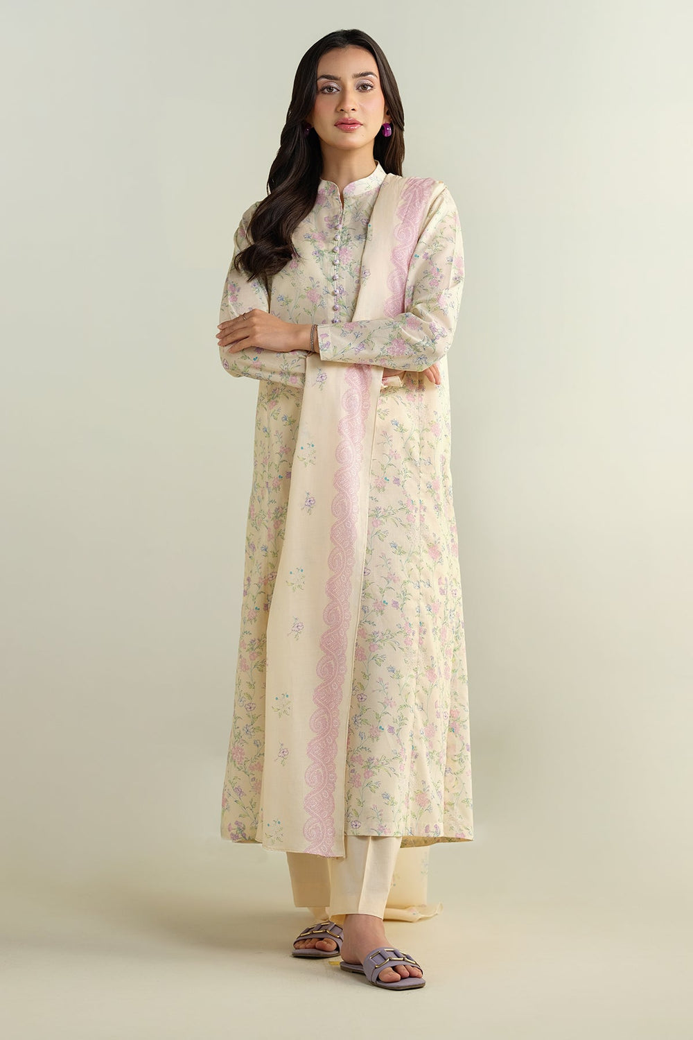 3 Piece - Printed & Embroidered Slub Khaddar Suit - C6401
