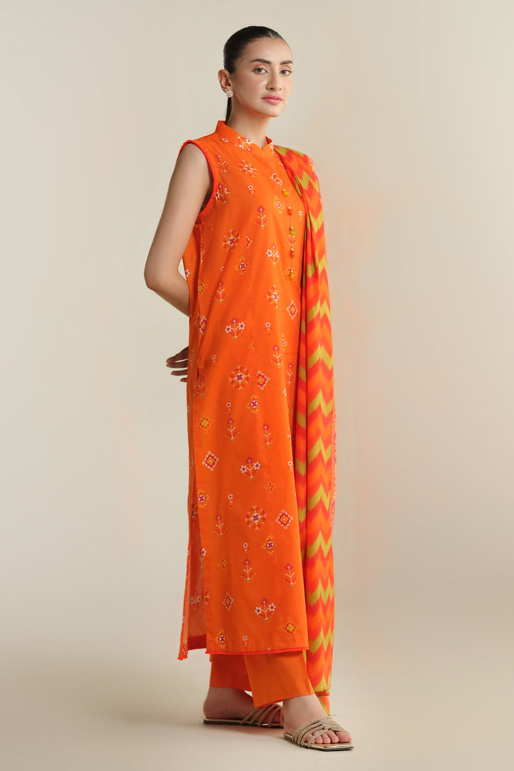 3 Piece - Printed & Embroidered Slub Khaddar Suit - C6401