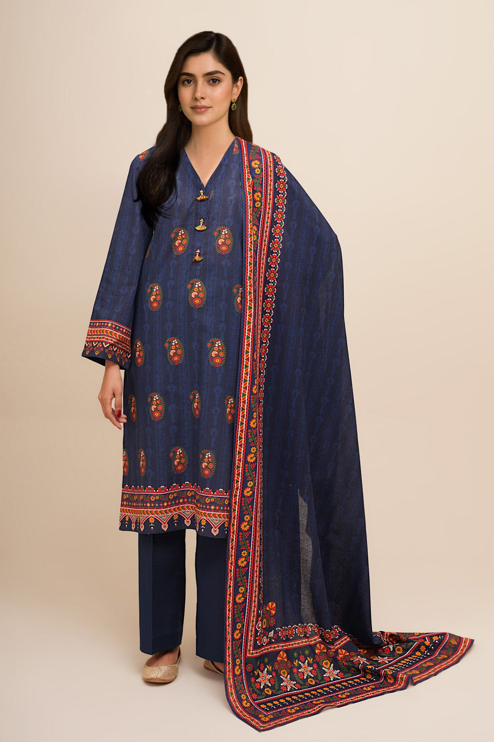 3 Piece - Printed & Embroidered Khaddar Suit - C6420